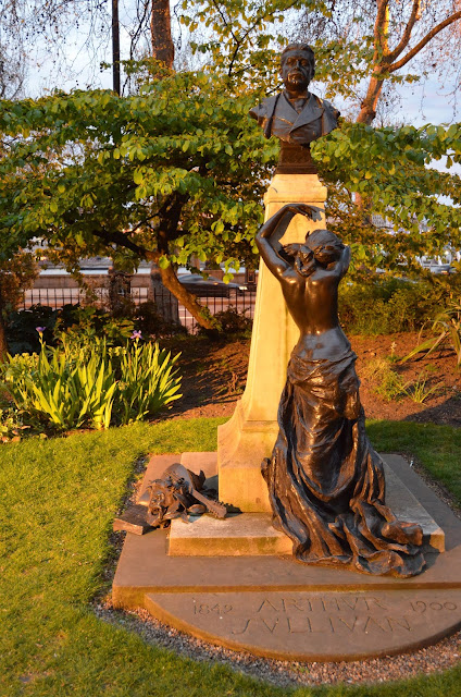Here is a monument to the English composer Arthur Sullivan (1842-1900). He wrote music for the Pirates of Penzance, H.M.S. Pinafore, several operas and orchestral works, and some hymns, including "Onward, Christian Soldiers".