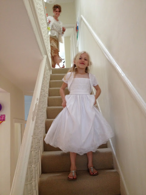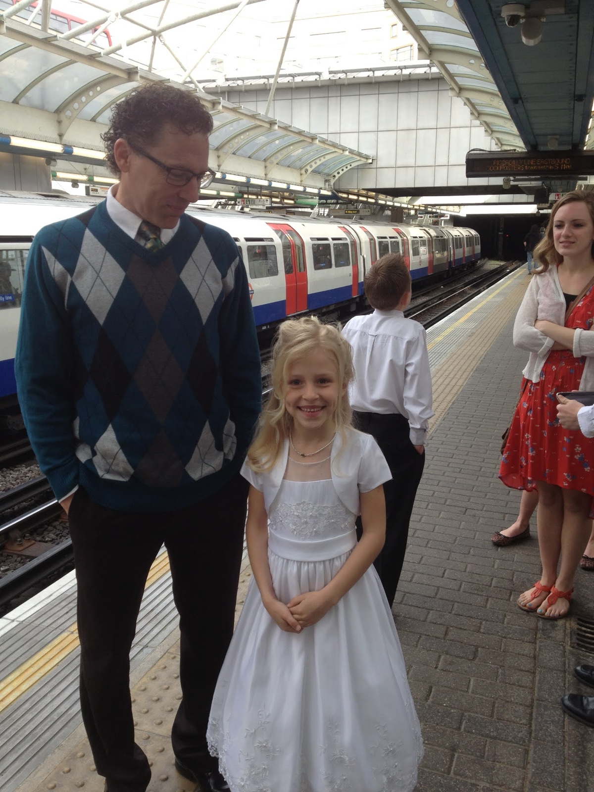 At that point, we had to leave to catch our train, so we said good-bye, told Kali she looked beautiful in her baptism dress, gave hugs, and headed out.