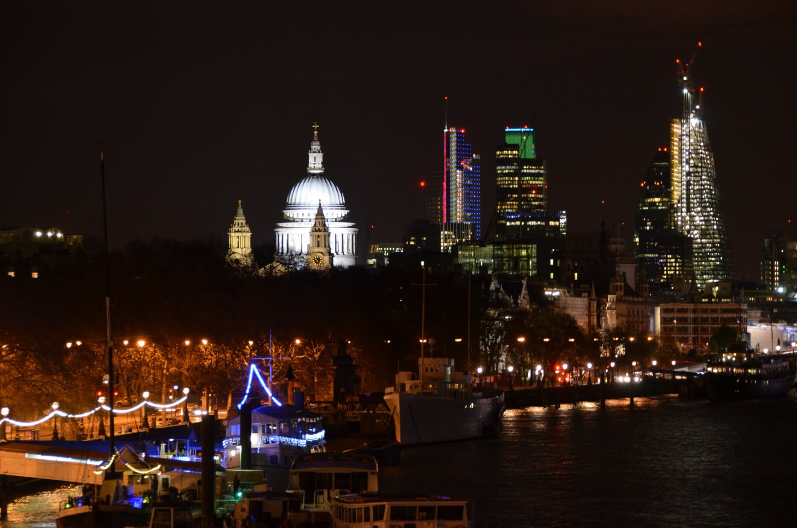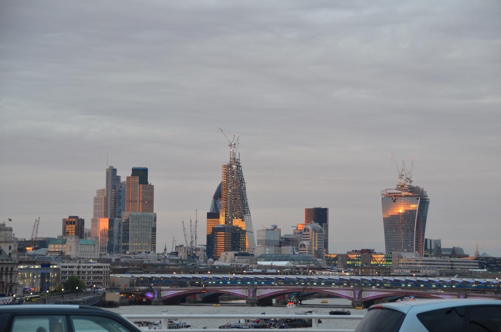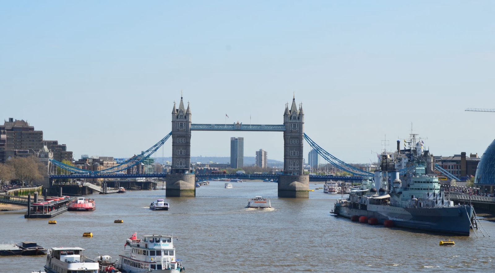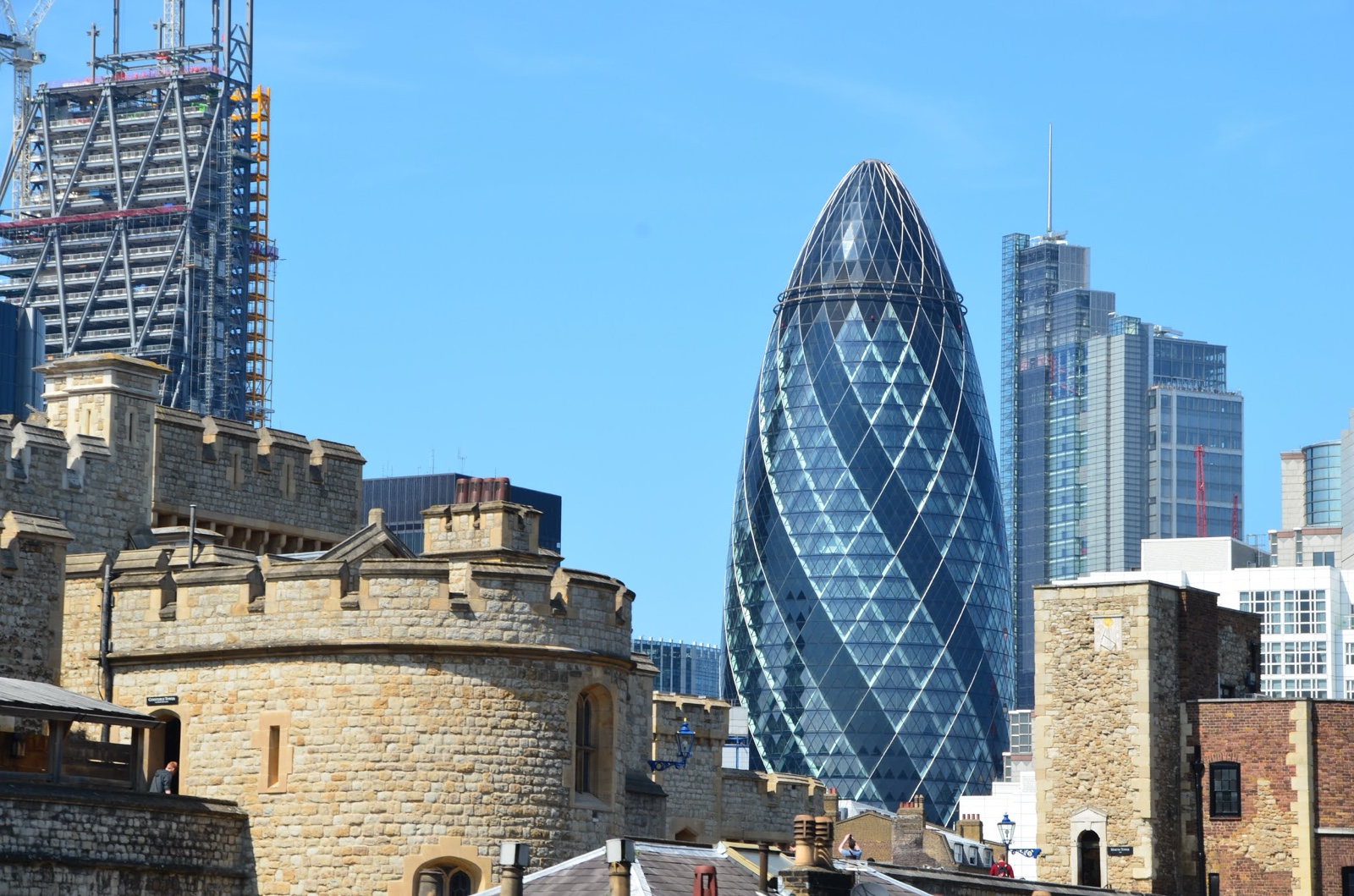 Above the Tower of London, you can see a building that people call "The Gherkin", because it looks like a pickle.