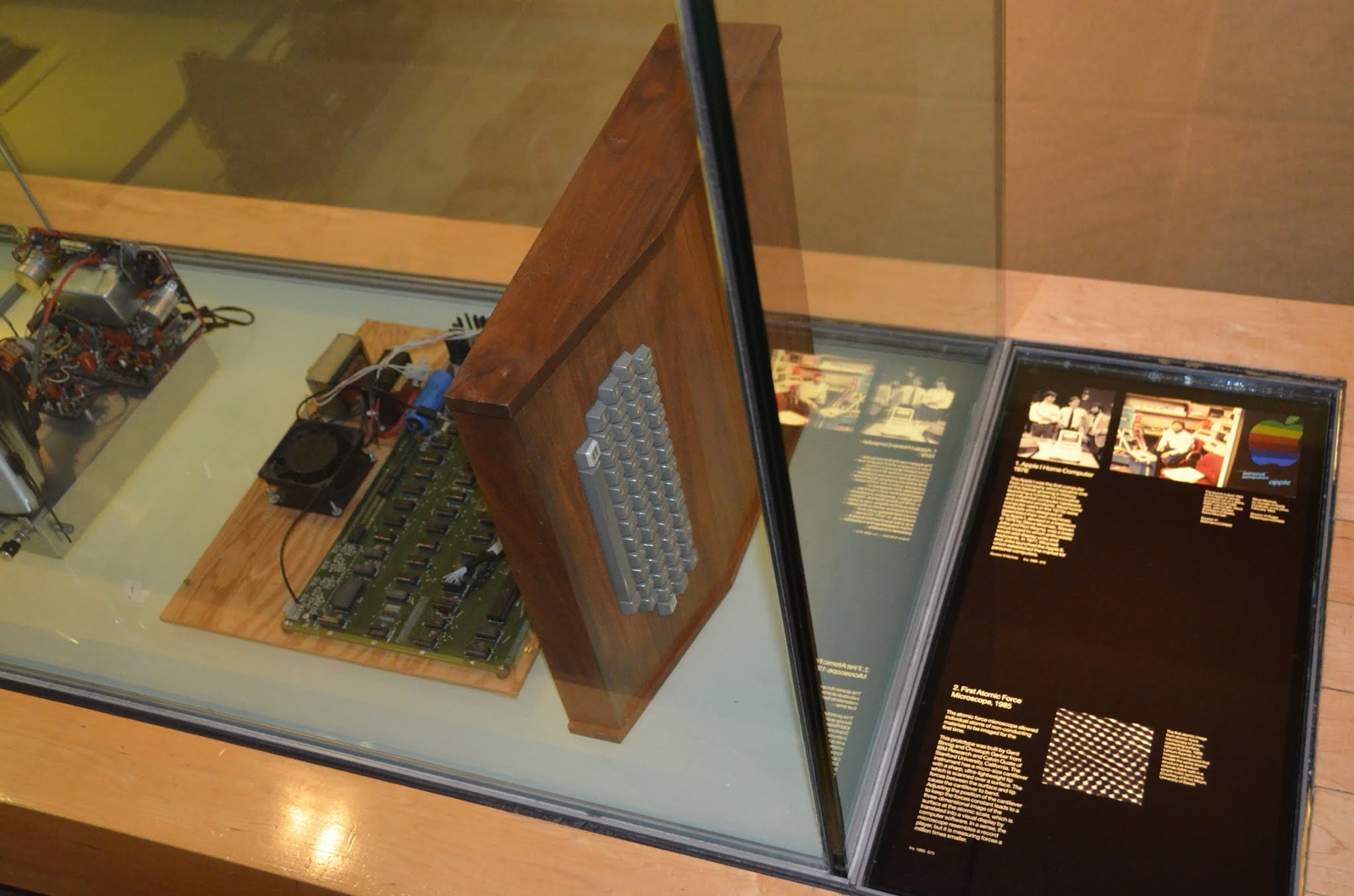 When I was in 9th grade, I bought an Apple ][ computer. Here is an original Apple computer (i.e., an Apple "1"), with a logic board screwed into a wooden case.