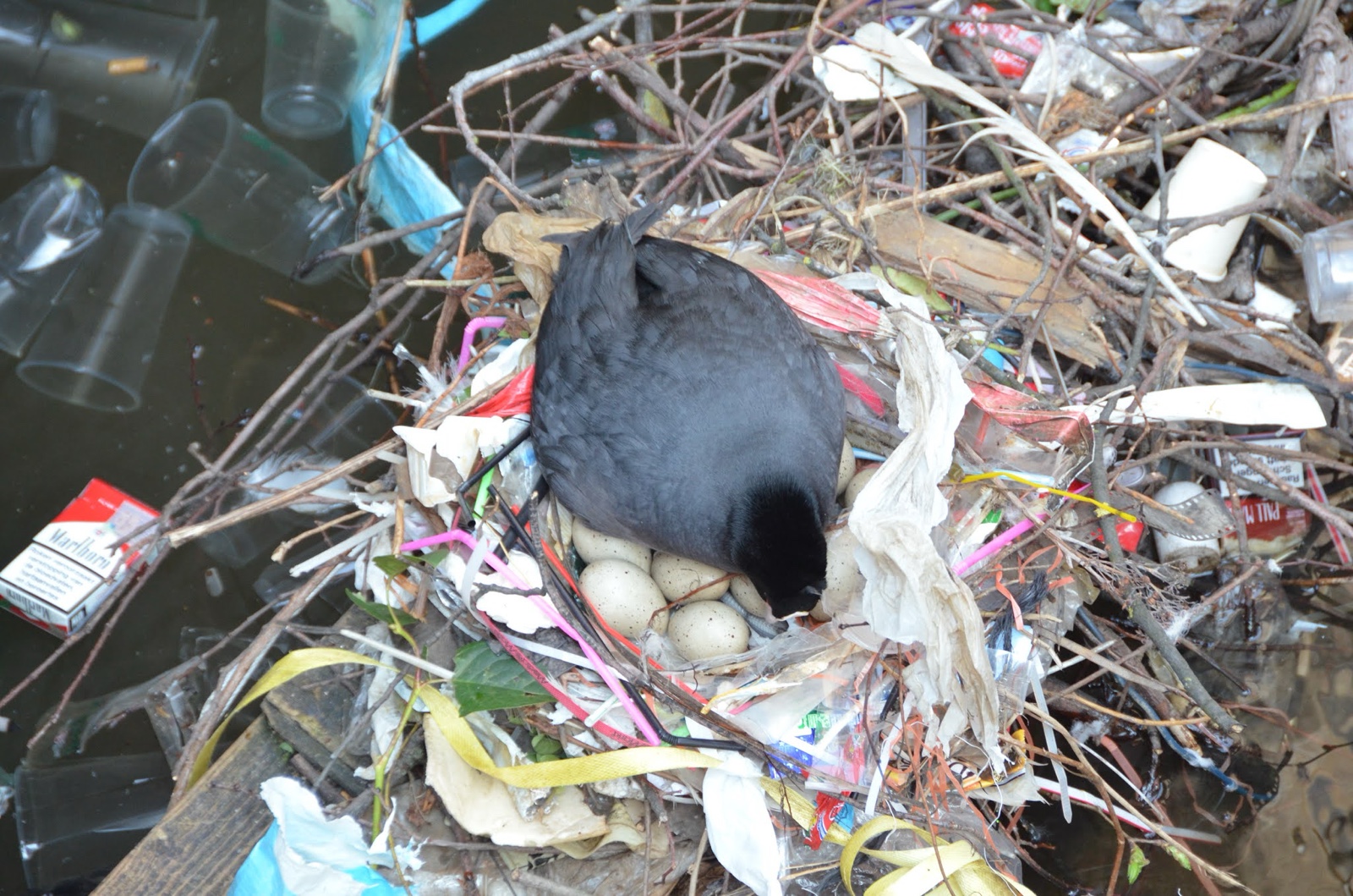 As we crossed one of the many bridges, I looked down and saw a cluster of garbage that a bird had used to make a nest with a whole bunch of eggs. Well, whatever works.