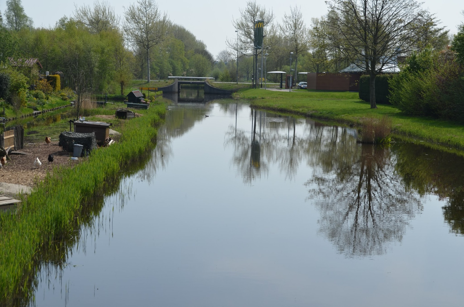 Here you have to look close to notice that there's a McDonald's over there. The section on the left is actually a small but long island full of chicken coops.