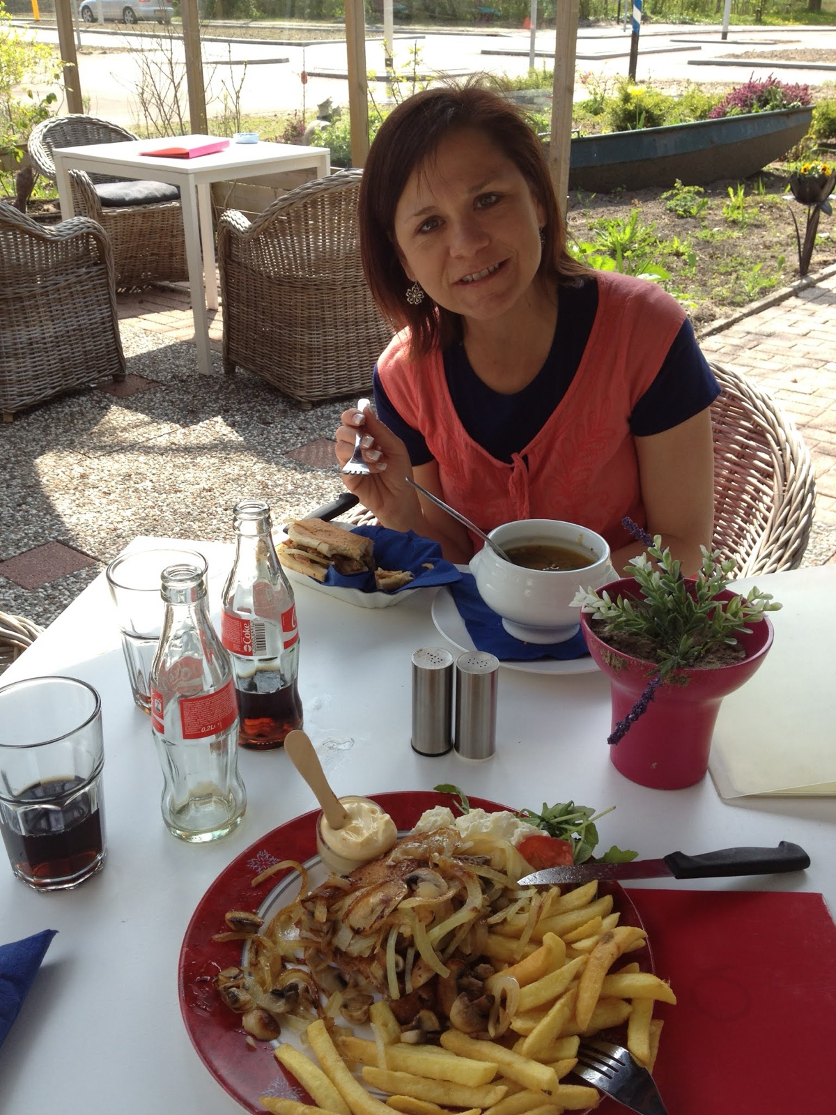 We stopped for lunch at an empty restaurant and opted to sit outside in the shade so we could enjoy the view of the adjacent waterway. When the food came out it was so huge we didn’t think we could eat it, but somehow, we polished off the whole thing.