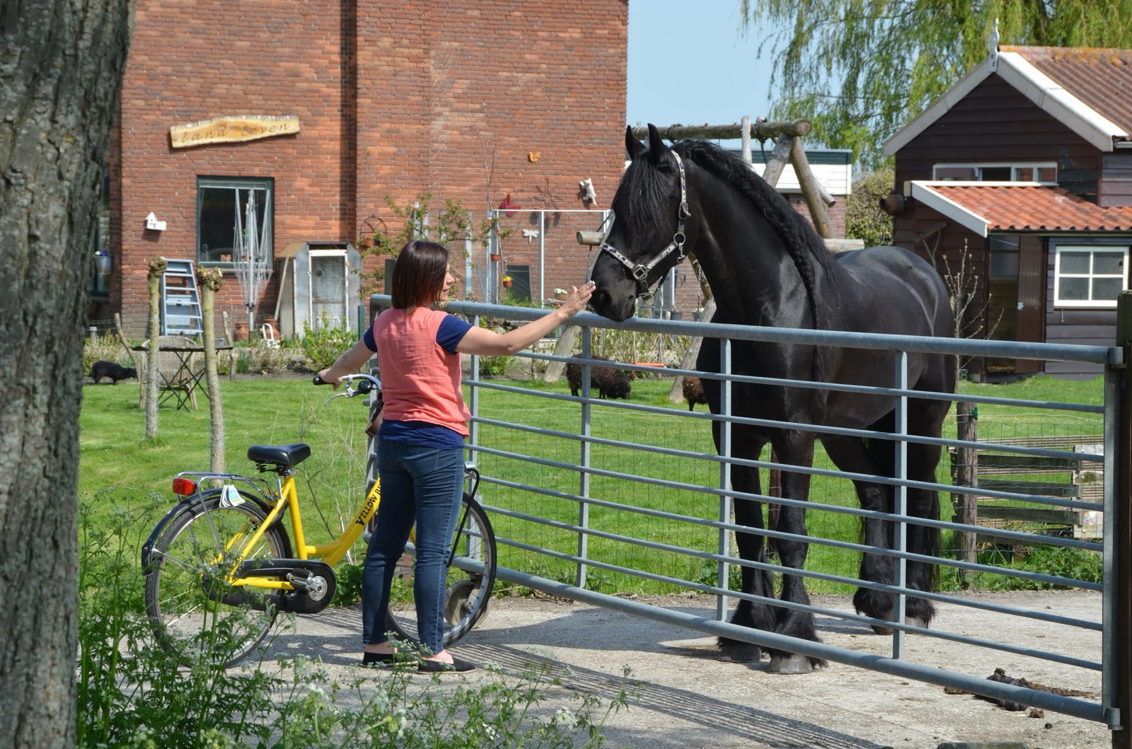We she was standing there, a lady came from across the street and said, "Would you like to see my horse?" She opened the gate and led us inside. We had a little chat with her, and she was so nice!
