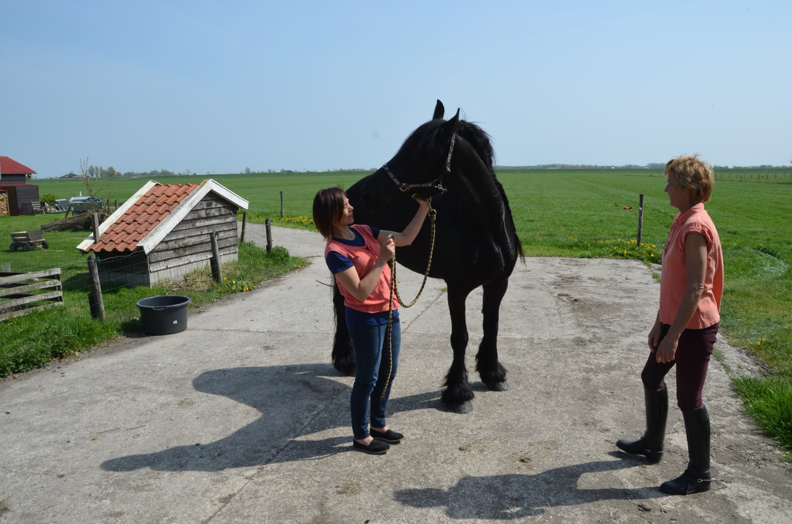 At one place, we saw a big black horse with big feet. I thought it was beautiful, so I had Linette go stand by it for a picture.