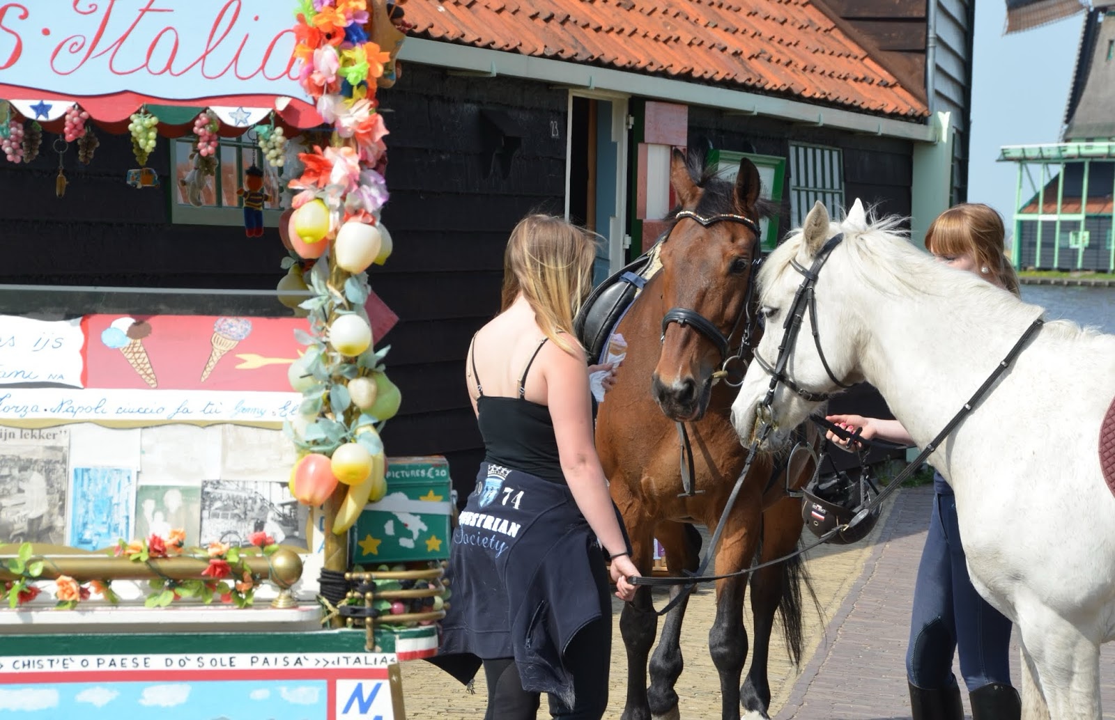Some gals walked their horses through the area. (I can't remember if we got gelato at the Italian ice cream place there, but it would be hard to imagine that we didn't...)
