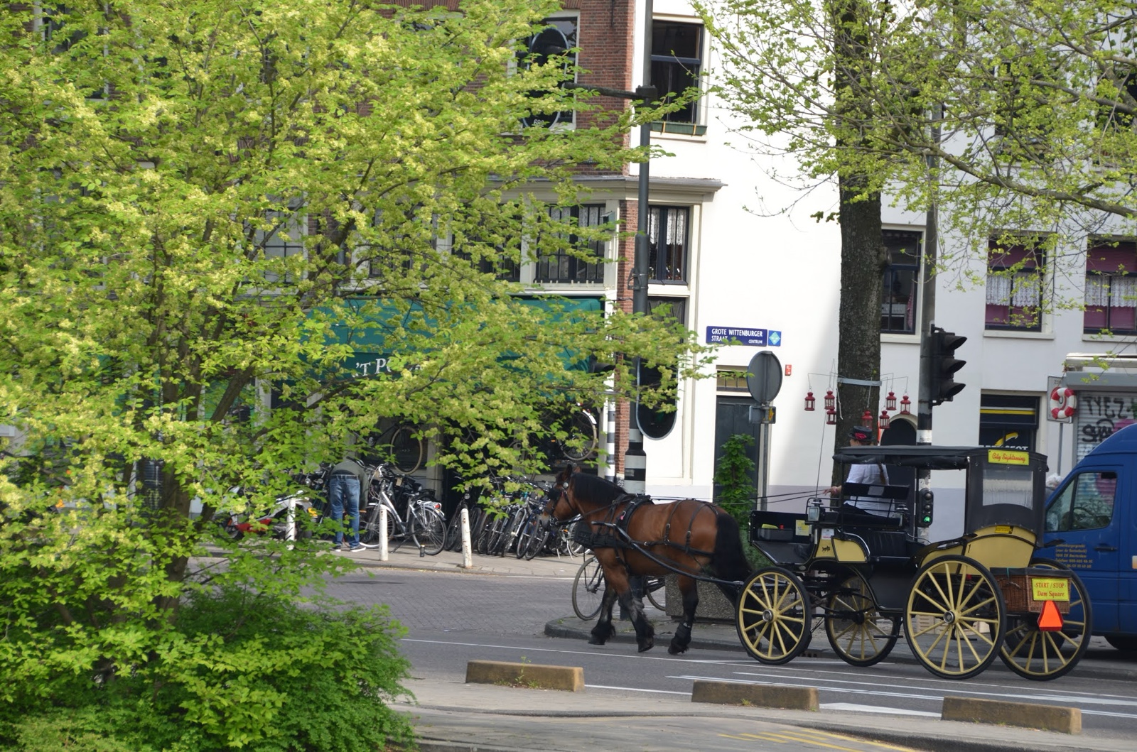 I saw a horse-drawn carriage going by, too.