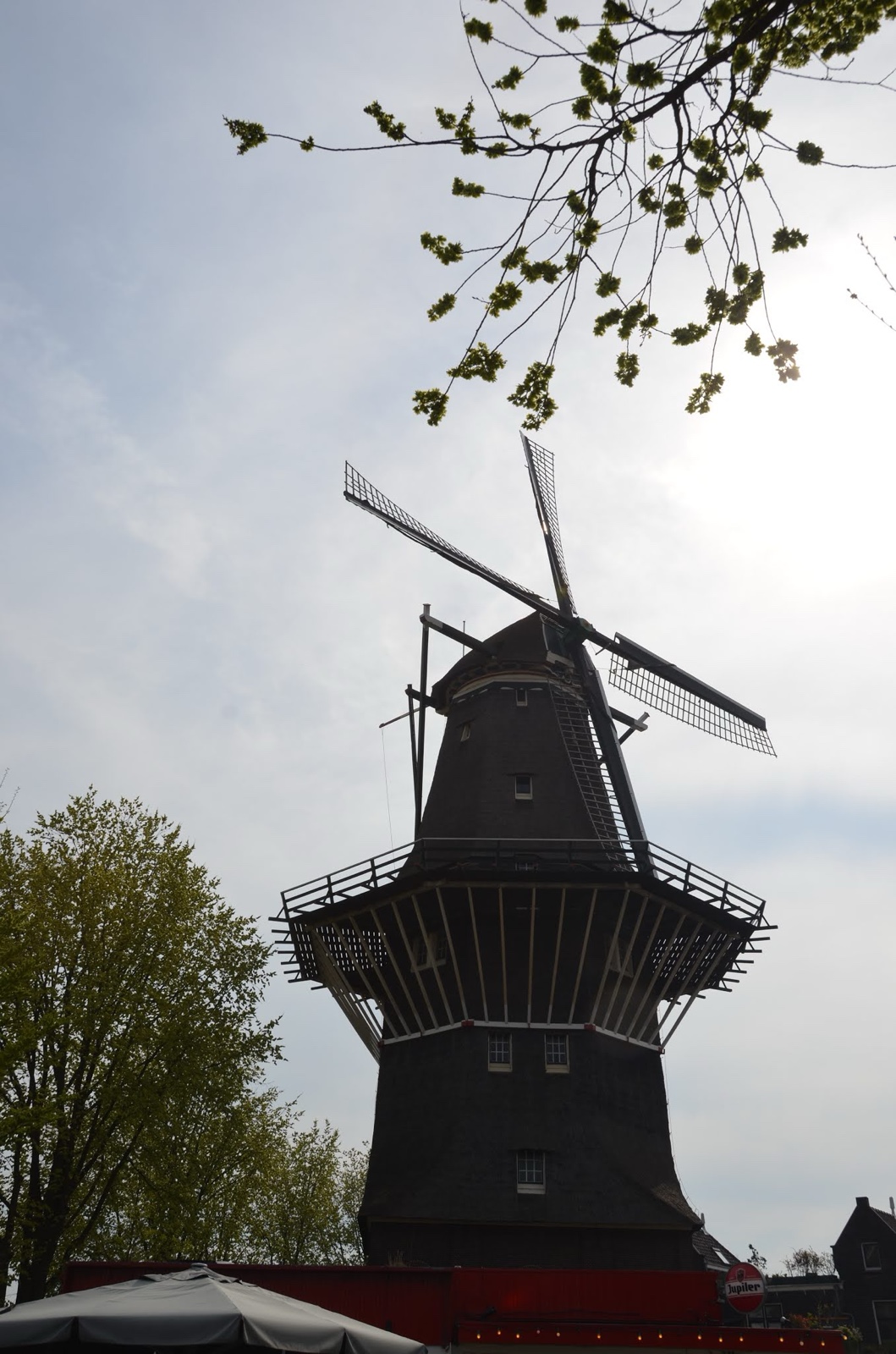 This is de Gooyer mill, which was rebuilt in 1725 to replace the original one built in 1609. It was used to grind corn.