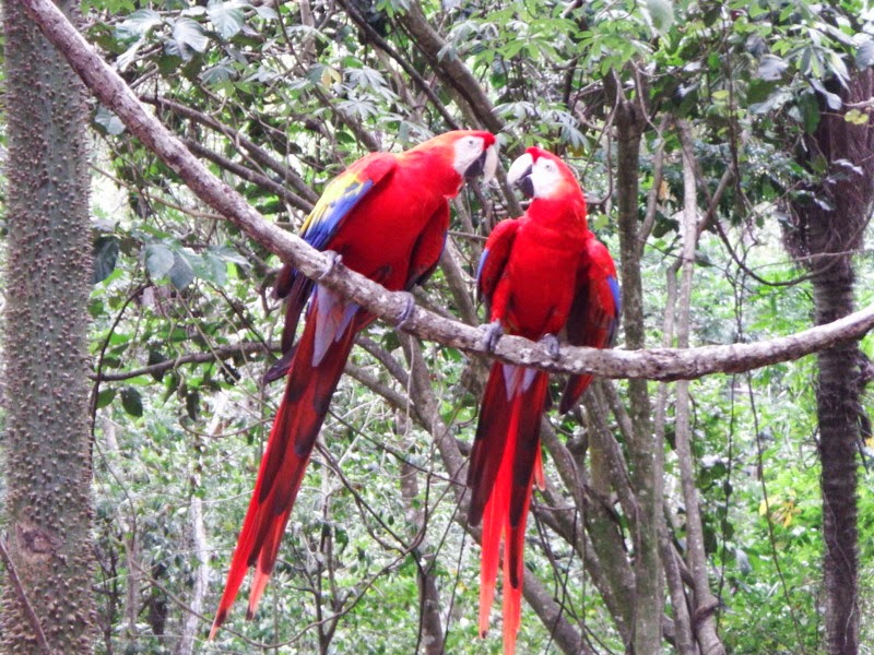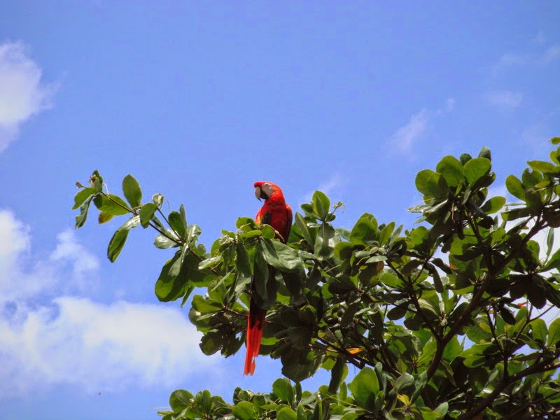 It was cool to see some beautiful red macaws flying freely through the trees.