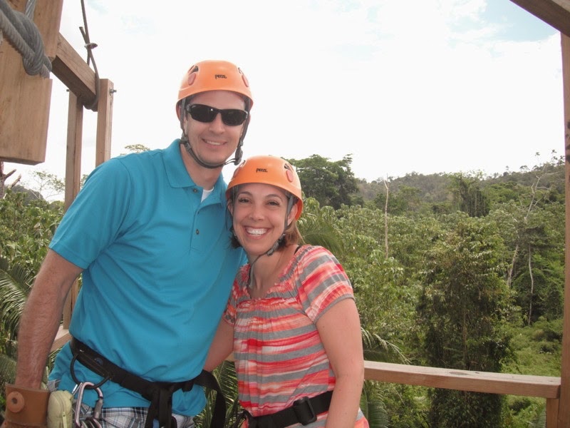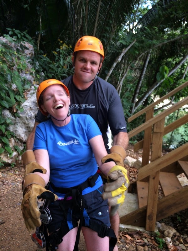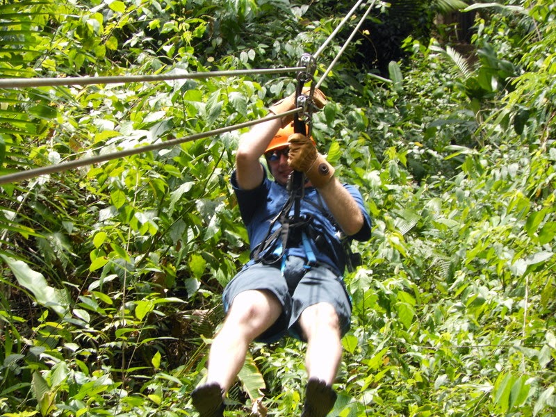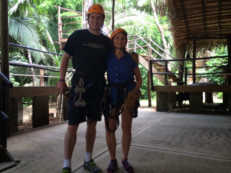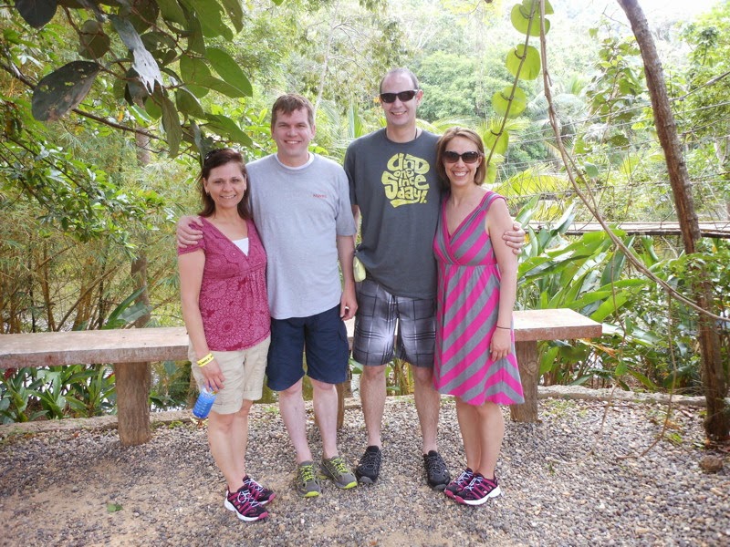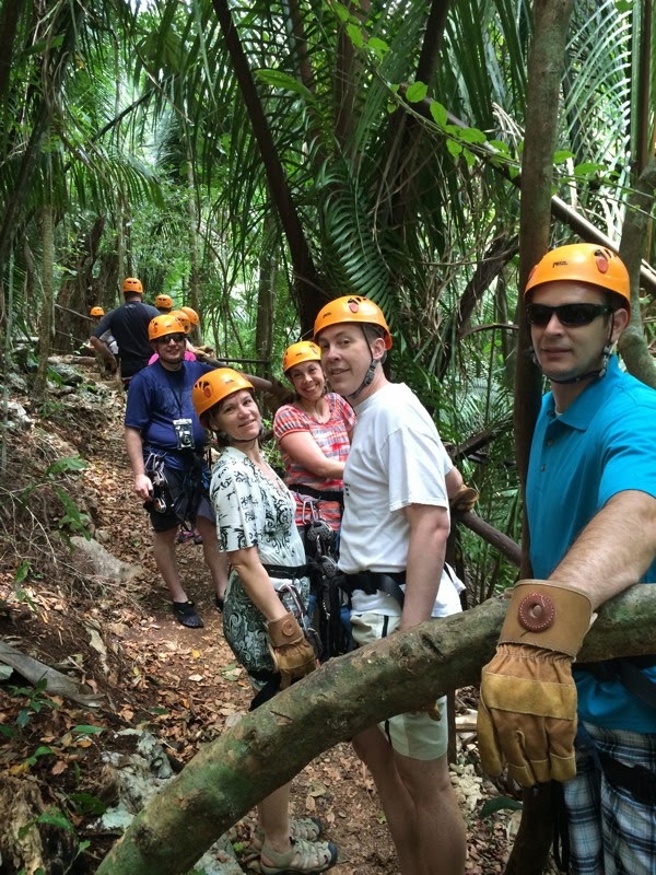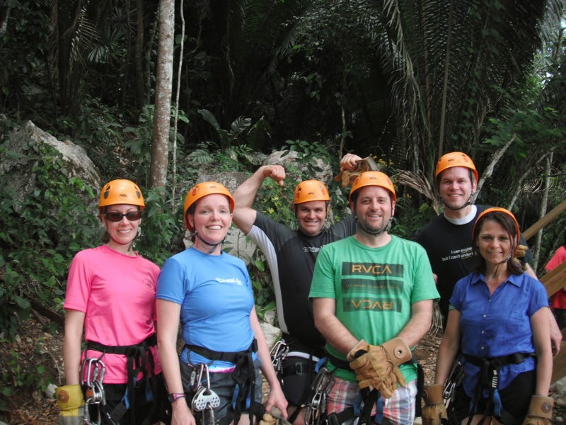 The Atkinsons. John "helped" Angelina do the zip lines. Between his help and our peer pressure, she was able to do all of the zip lines, in spite of her fear of heights. (She did yell "I'm going to die!!" on the first run; and had nightmares that night of falling of of them.)