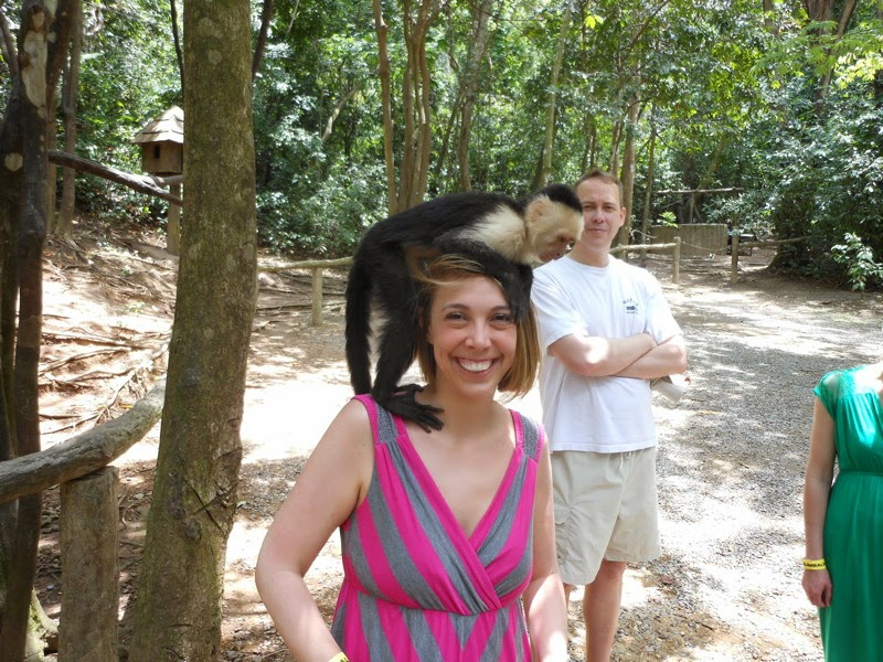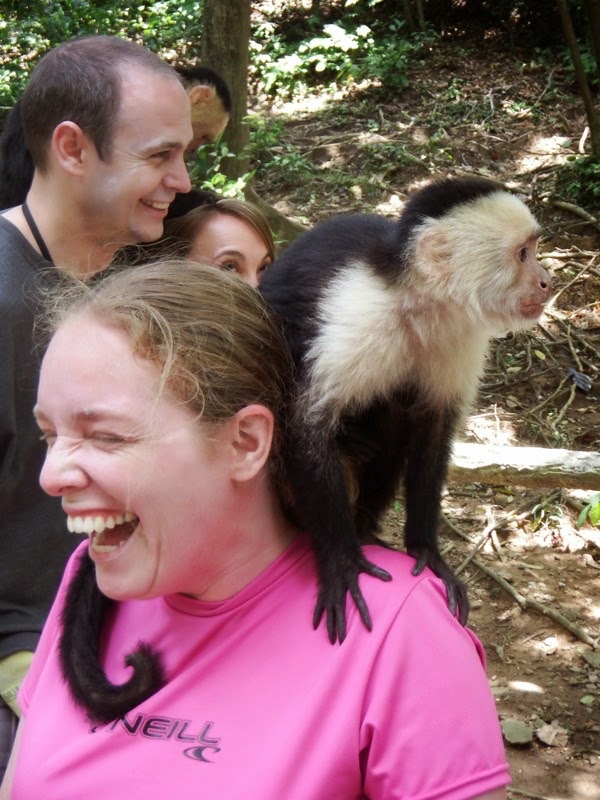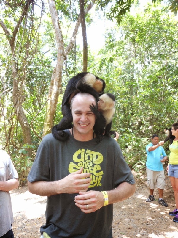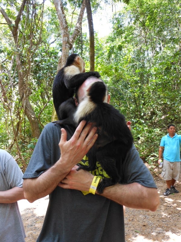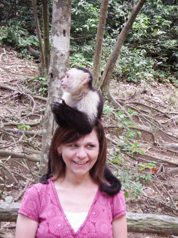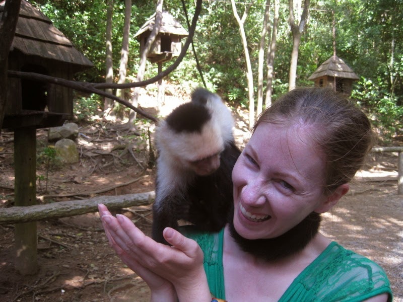 There were Capuchin monkeys swinging through the trees, and a guy got them to come down and stand on our shoulders. It was so cool!