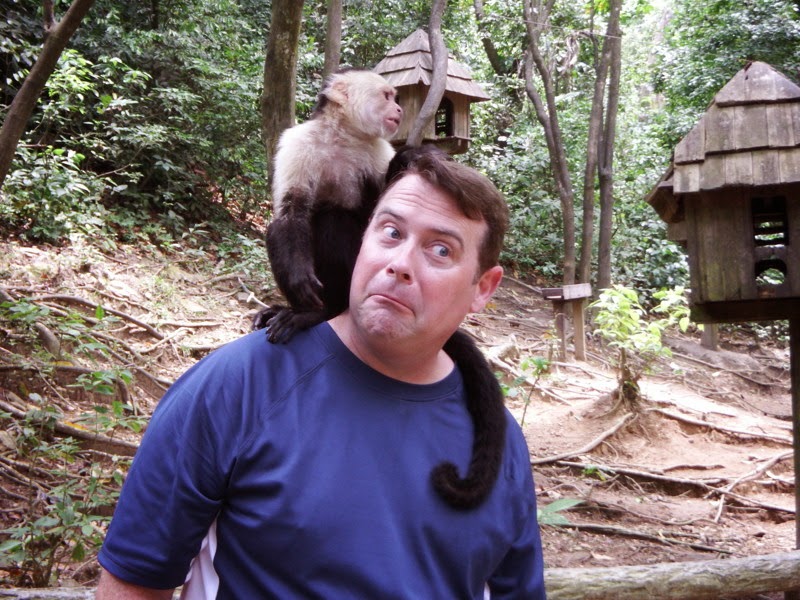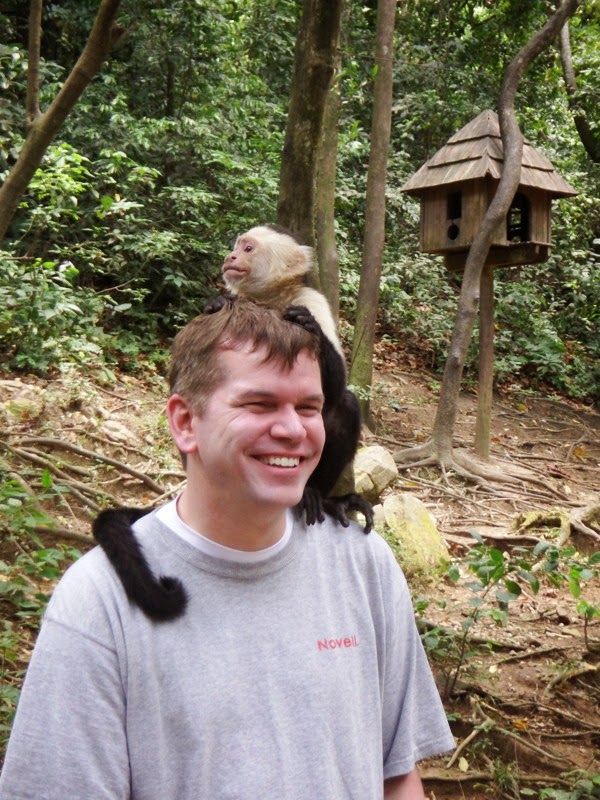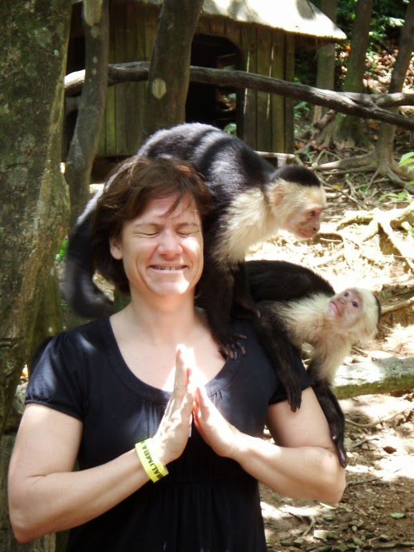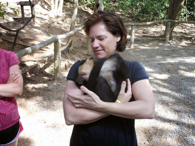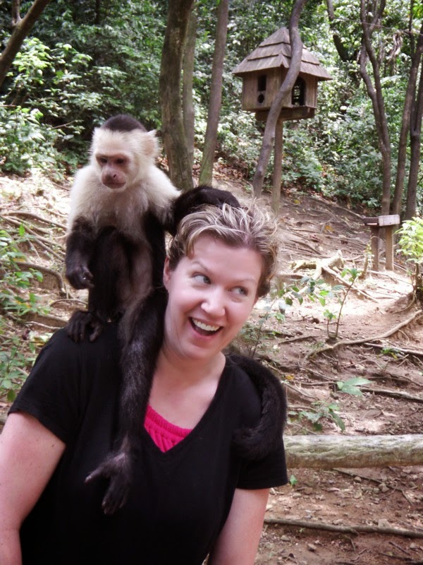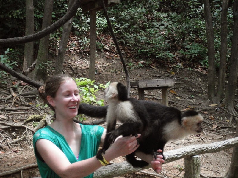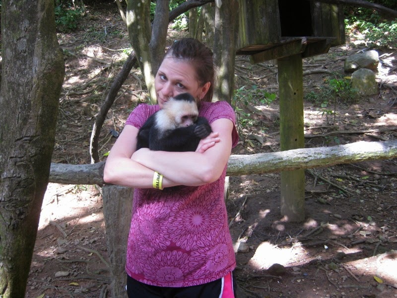 There were Capuchin monkeys swinging through the trees, and a guy got them to come down and stand on our shoulders. It was so cool!