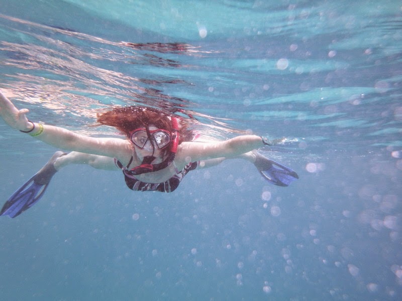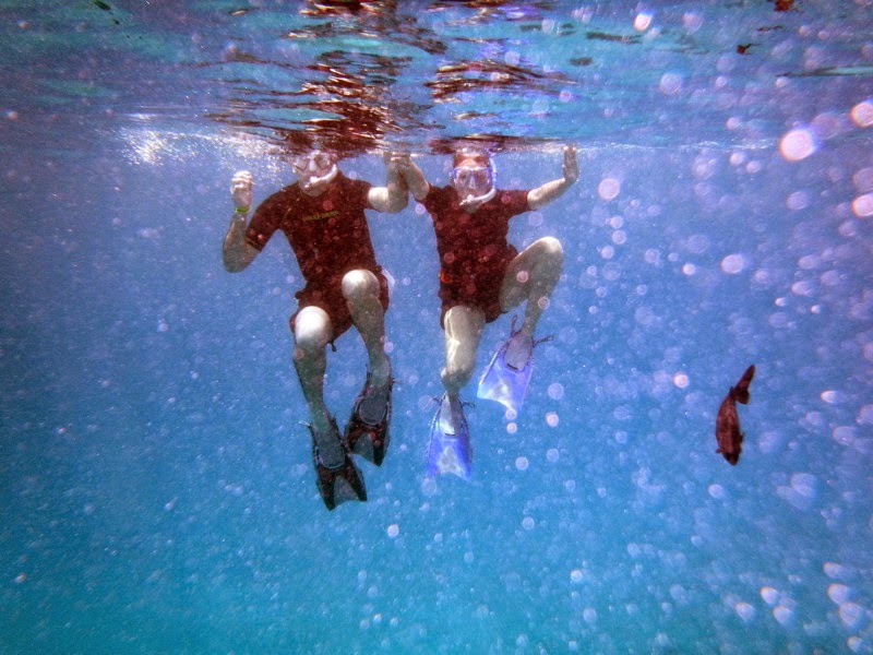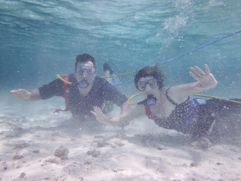 Then they did SNUBA (like SCUBA, except your air comes through a hose instead of a tank on your back, so you only need 30 minutes of training), followed by some snorkeling.