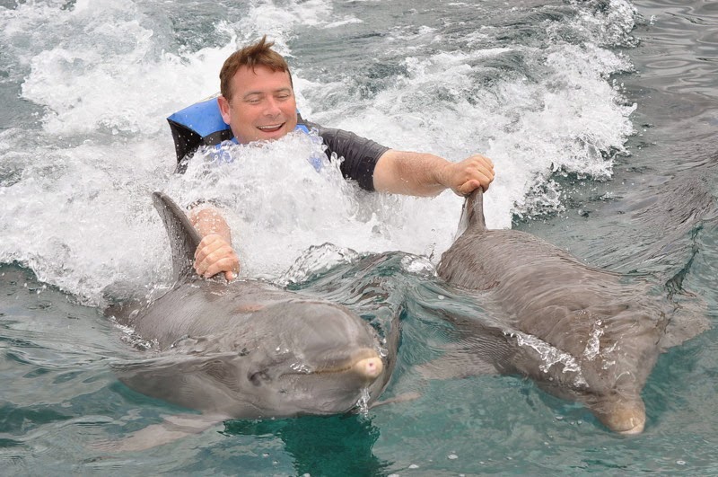 Here I am with my feet back...One dolphin hit each foot with their nose (chin?)...