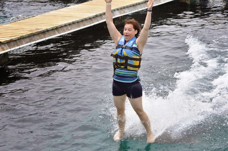 That afternoon quite a few people tried the boogie boarding version of the Flowrider. It was a lot easier to do, which left room for learning to do tricks, like getting up on our knees with our hands out or doing a barrel roll. I eventually got to where I could do one barrel roll and stay on the board; or two and go flying away.