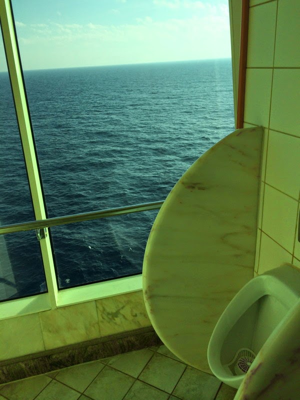 Probably the best view from a urinal that I've ever seen. Not recommended at night in port.