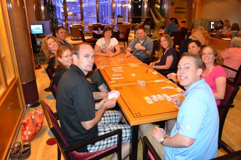 We played games (Hand and Foot shown here) at the library late into the night, while I gathered everyone's photos so I could do my synchromogrification of them.