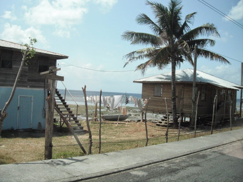 As we drove to the west end of the island, we saw weather-beaten homes on stilts.