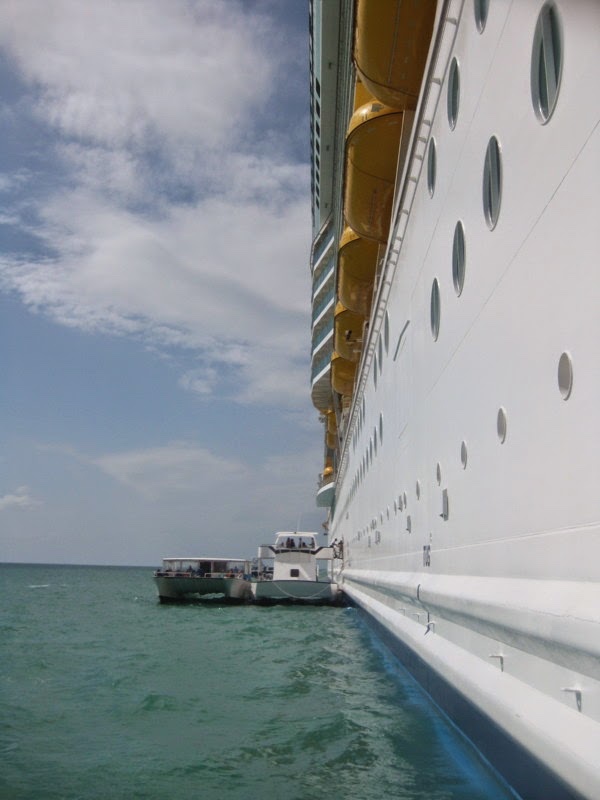 Thursday, April 10, 2014, we went to Belize. We had to "tender" (take a small boat) over to the shore because it was too shallow for the ship, which is pretty much a high-rise apartment building complex on the water.