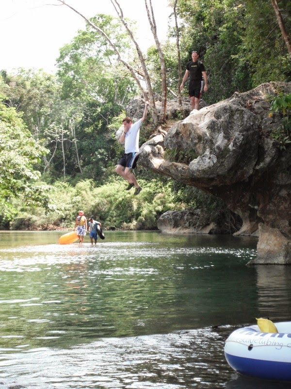 We booked a tour through Charlie's Cave Tubing, and the guides were great. They told about how Belize was first Mayan, then used by pirates, and eventually acquired by England. English is the official language, though most kids grow up speaking Spanish at home and learn English in school. Belize became an independent country in the late 1900s, but is still part of the British Commonwealth, which means that there are aircraft carriers backing them up when necessary.