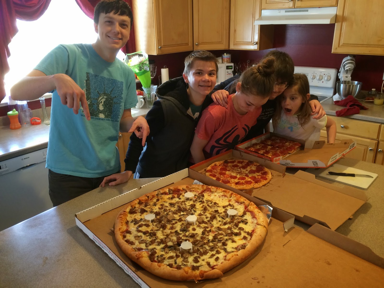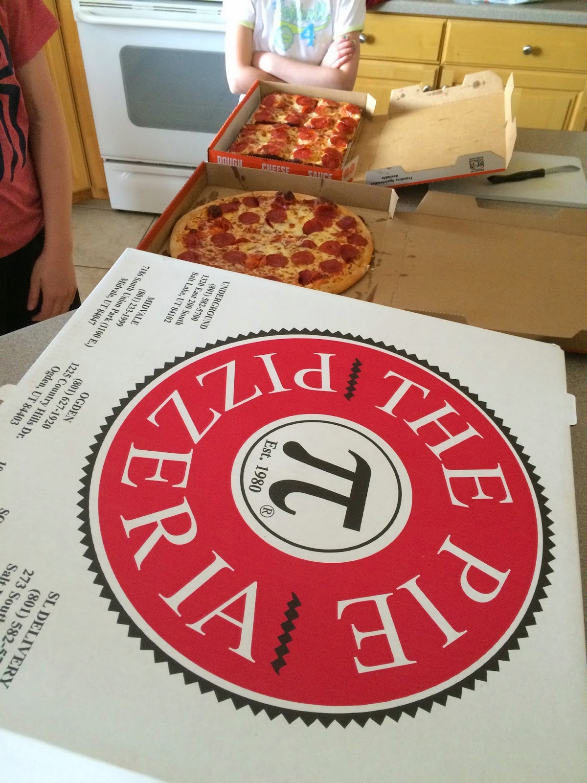 Back home, we celebrated Pi Day with a party-sized pizza from the Pie Pizzeria.