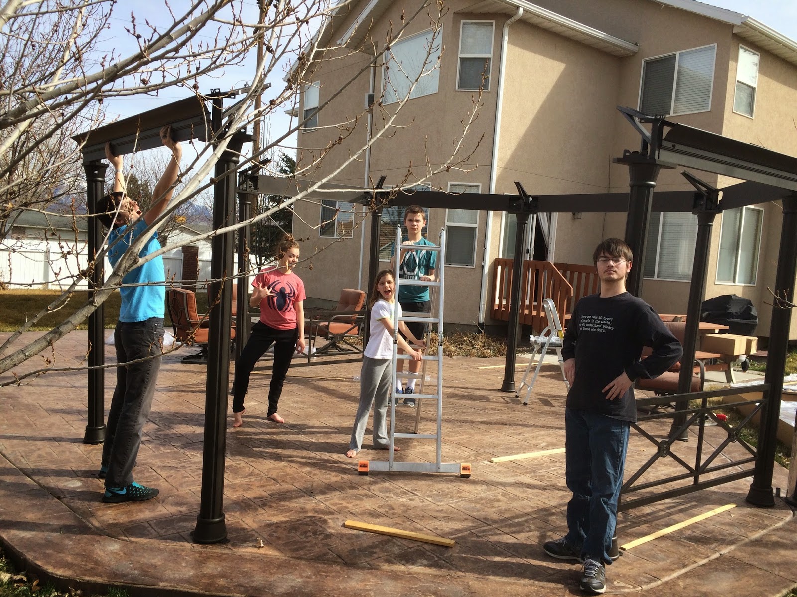 Then we did a bit of a barn-raising, assembling the main frame of our gazebo.