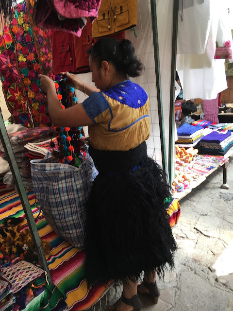 We shopped in a big open-air market and had fun seeing all the colors and clothes. There were a lot of ladies from Chomula who wore these traditional black goat skin skirts.