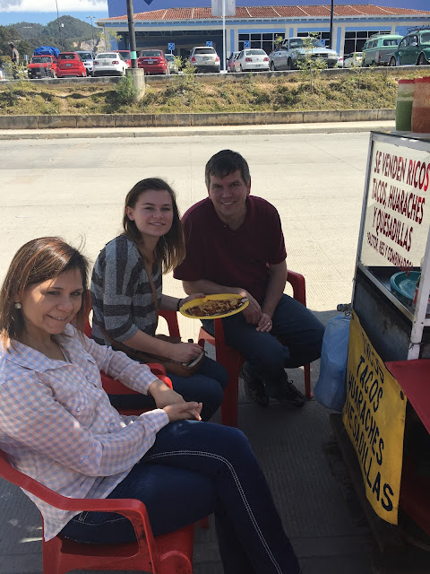 After shopping, we stopped to get some cash at an ATM and then ate at this street taco vendor, and survived! And it was SO TASTY!