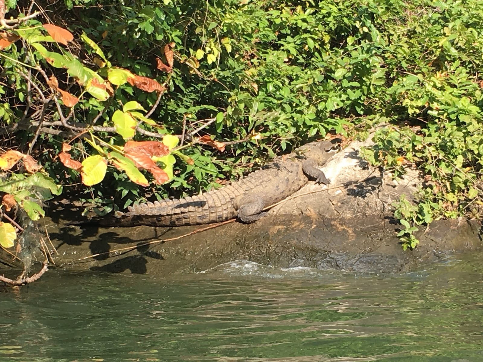 We got to see some cranes, some monkeys jumping around in the trees, and this crocodile.