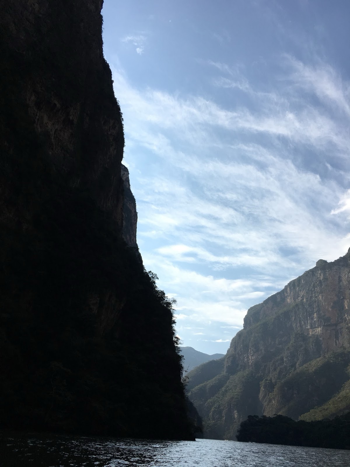 The walls of the canyon rose as high as 3,000 feet from the water. It was hard to capture on a camera.