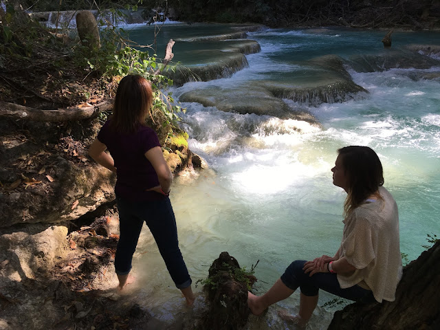 On the way back down, the girls and I went zip-lining. (Linette was still under the weather a bit and wasn't feeling up to it). That first moment when we went off of the platform and right over a tumbling waterfall was pretty awesome.