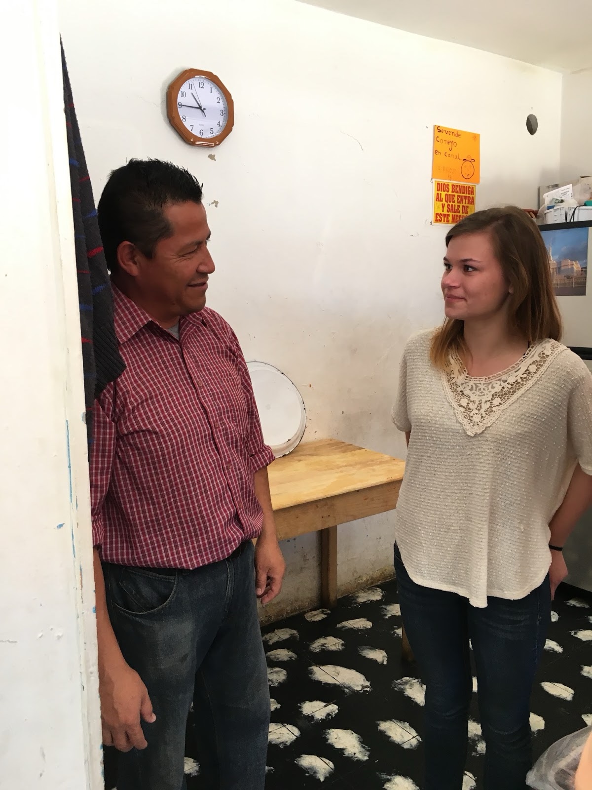 On the way back to the van we stopped by the clothing store where we had visited a member the day before. This time her husband was there, so we had a nice visit with him. (I tried to take this picture in such a way to give him a Christian halo).