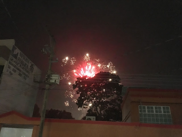 At midnight we walked outside and stood under a cement overhang to watch the fireworks. They erupted with a fury and went for 10 minutes or so before tapering off. It was pretty spectacular.
