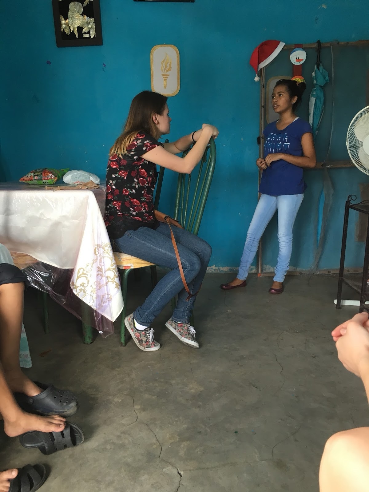 Here is Kelsi talking with Jenny's little sister Alma. Note the young women symbol on the wall.