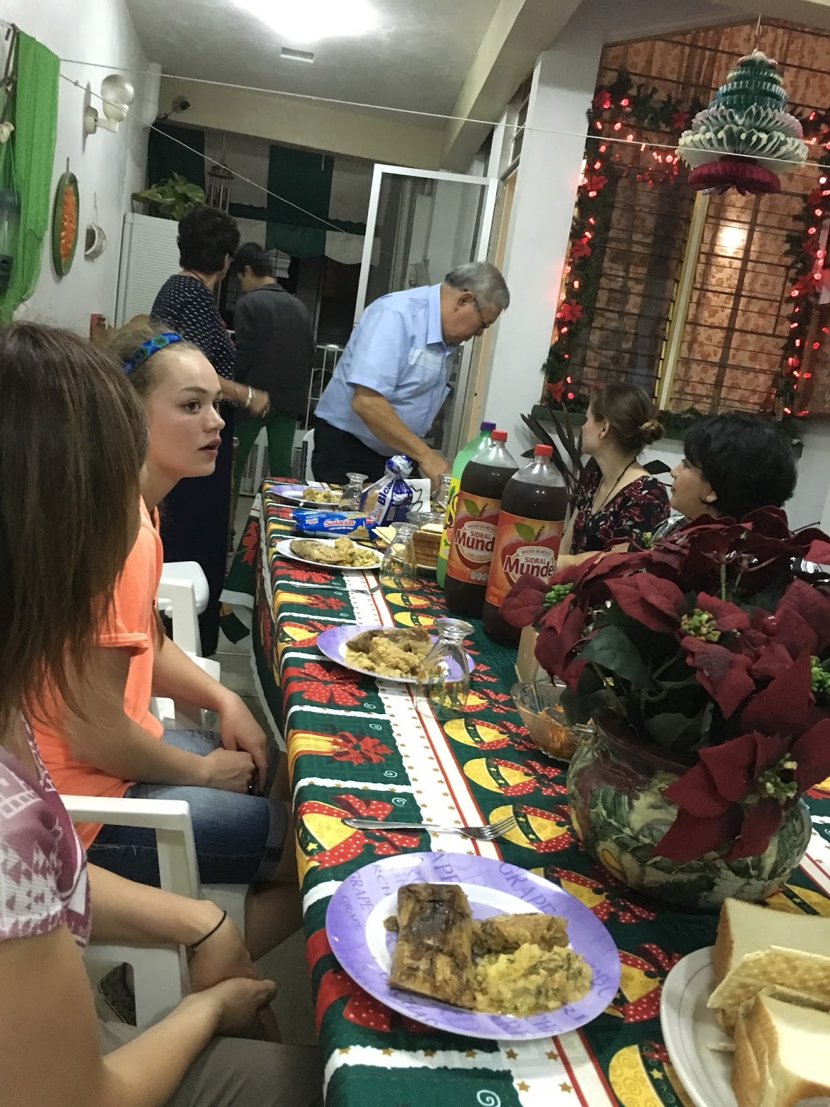 We had a wonderful dinner of tamales, meat, potatoes, apple soda, and so on.