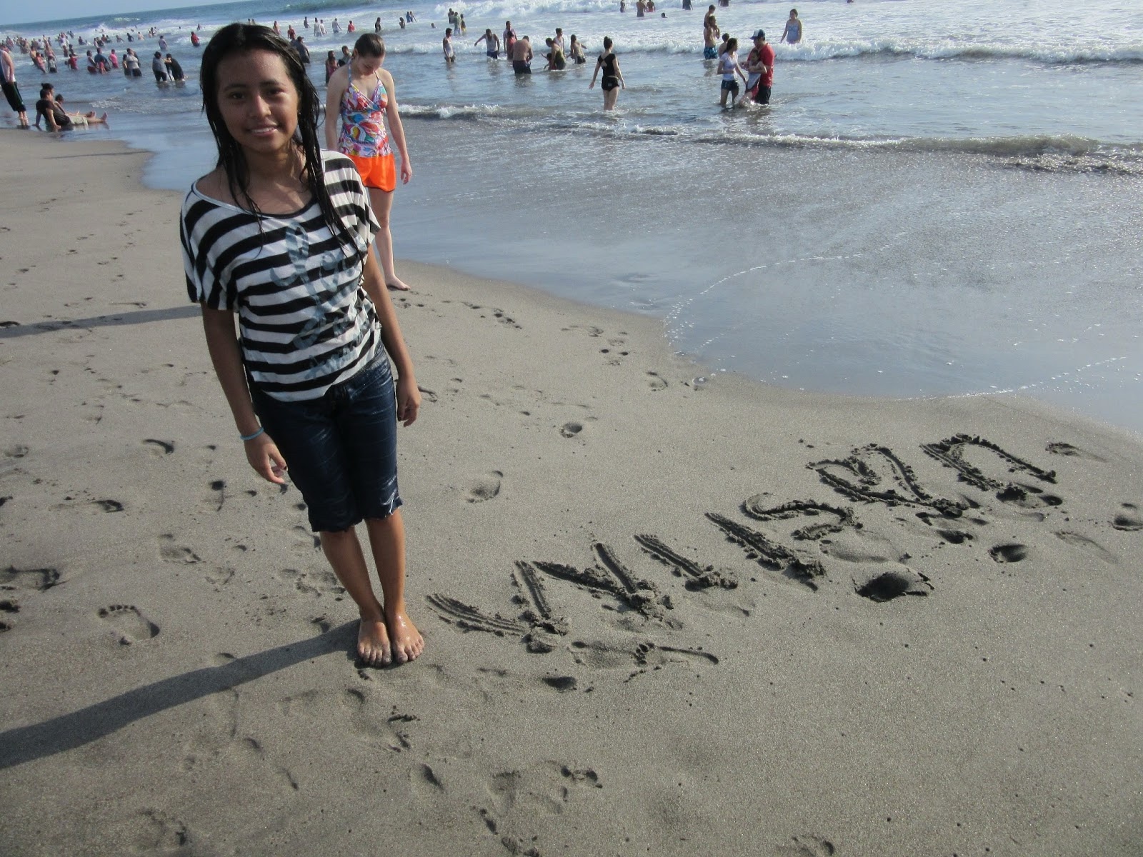 Alma wrote a nice "Wilson" message in the sand.