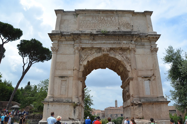 The Arch of Constantine is found just outside the Colosseum, and was dedicated in 315 A.D. to commemorate the triumph of Constantine over Maxentius at the Batle of Milvian Bridge in 312. It spanned the road used by emperors to enter the city.