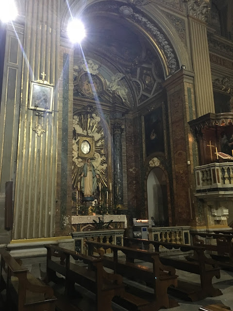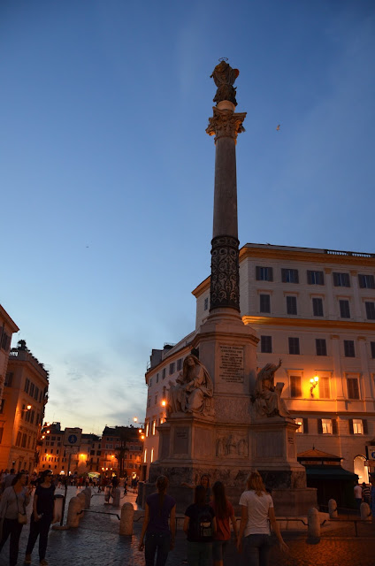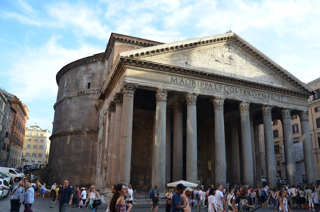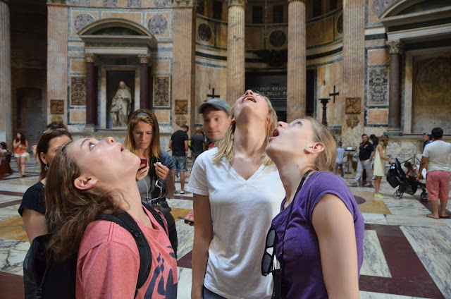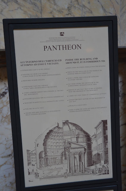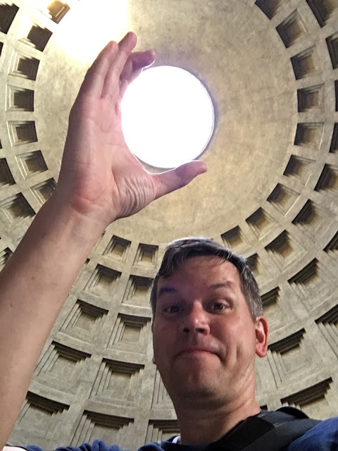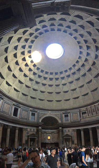 Our next destination was the Pantheon, the only building in the world that has been in continuous use for almost 2,000 years. It was dedicated in 126 A.D. and "is still the world's largest unreinforced concrete dome." It was originally built as a temple to "all the gods" (pan=all, theon=gods), but since the 7th century has been used as a church dedicated to St. Mary and the Martyrs.