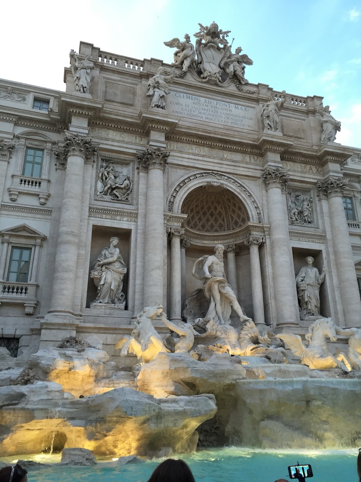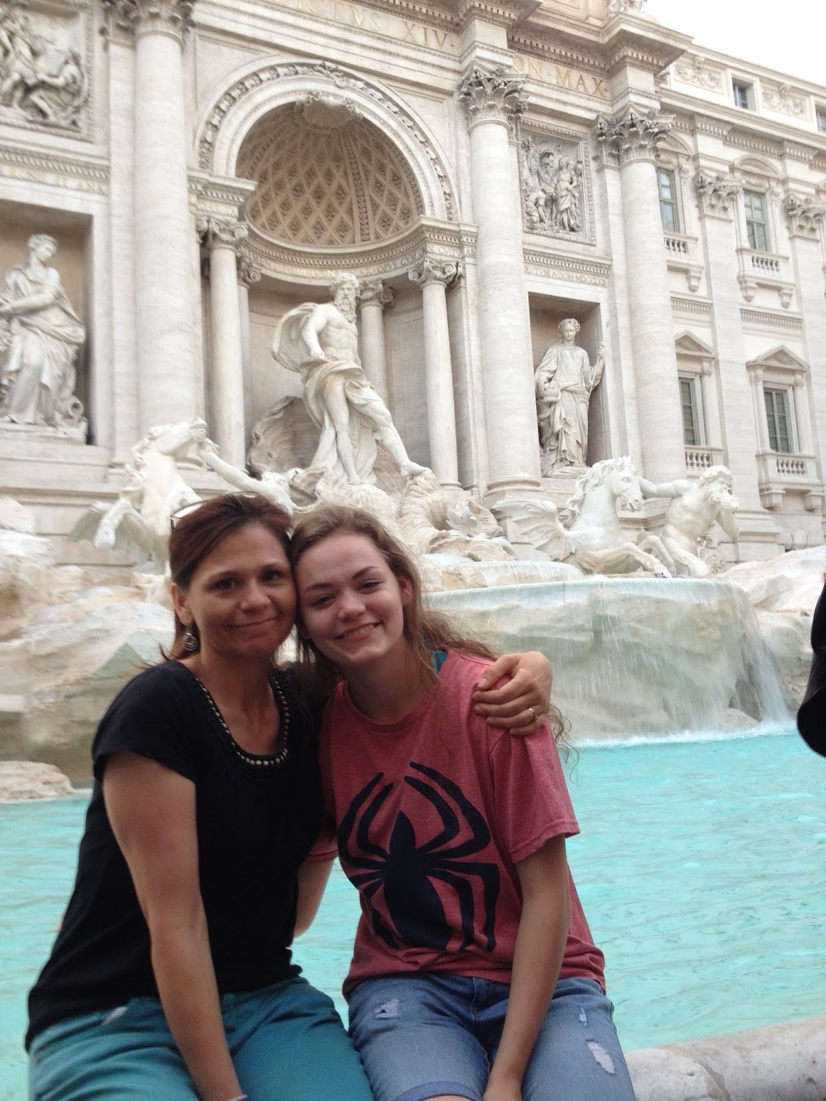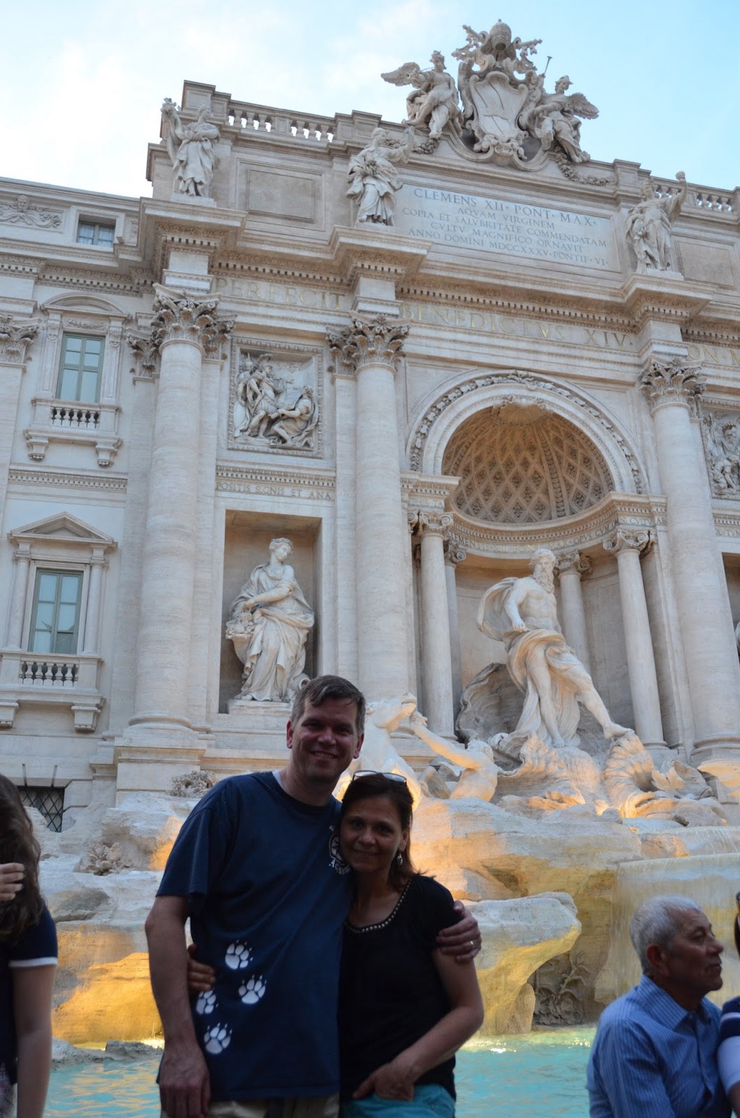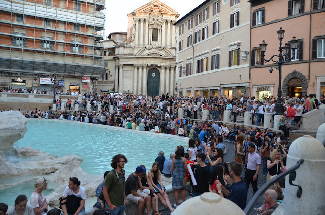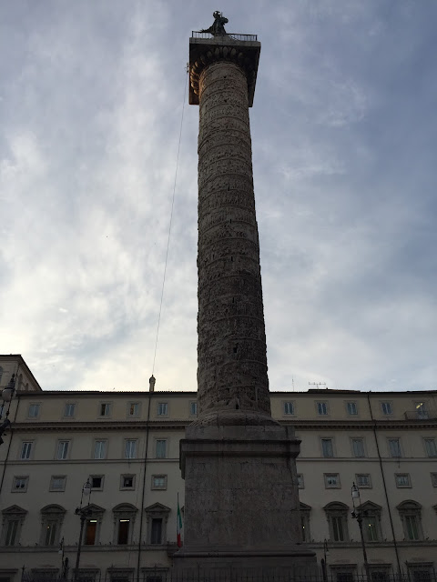 Next we walked to Trevi Fountain, passing along the way the Column of Marcus Aurelius, a Roman victory column, completed in 193 A.D. to celebrate the triumph over the Marcomanni, Quadi and Sarmations in 176. (I'm not familiar with any of those...)