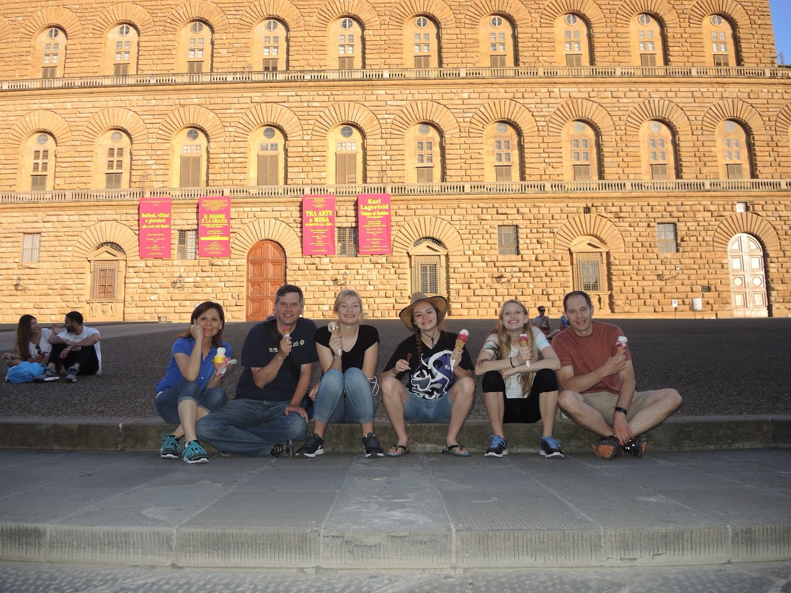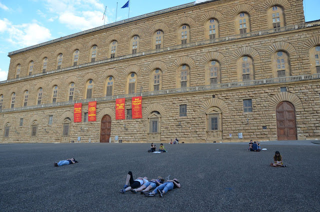 | Our three girls crashed out in front of the Pitti Palace. |
