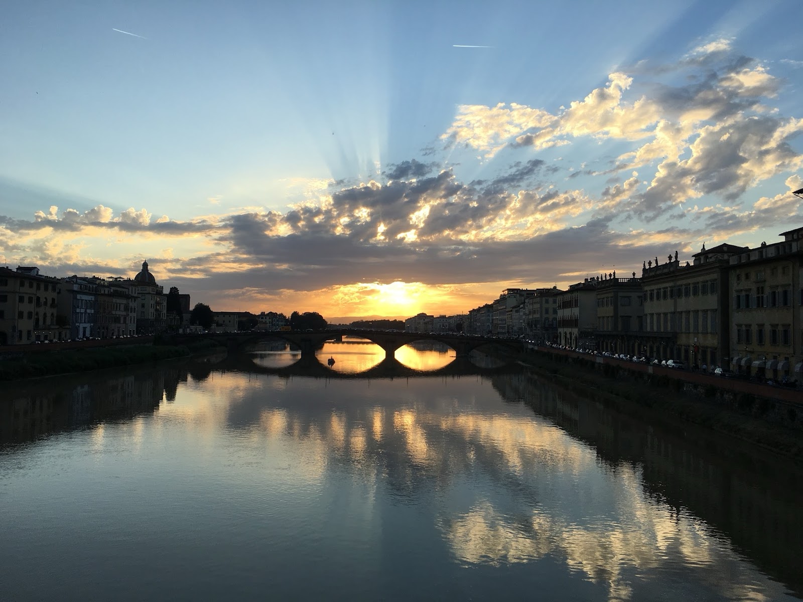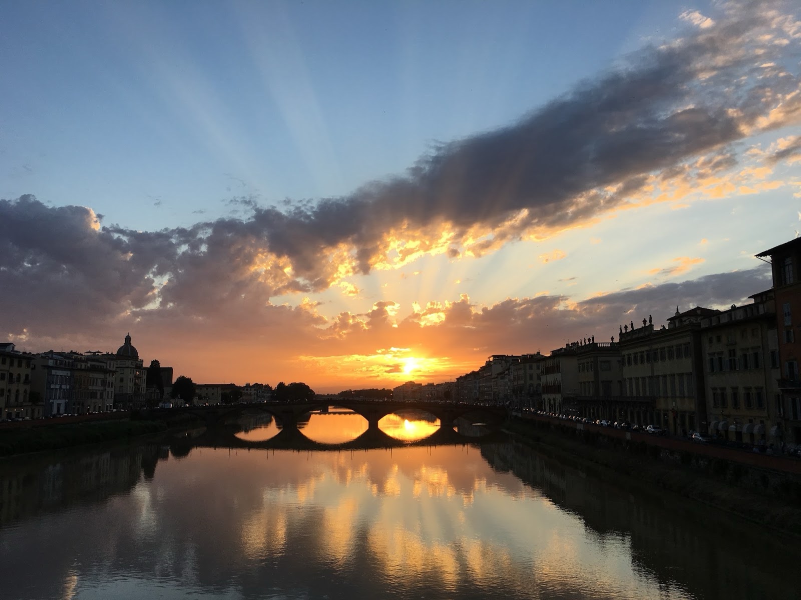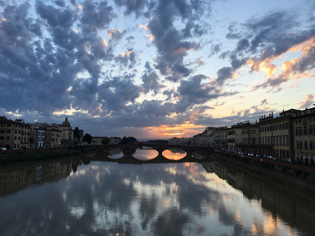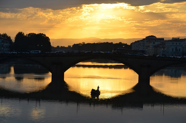 | Sunset over Florence, from Ponte Santa Trinita. |