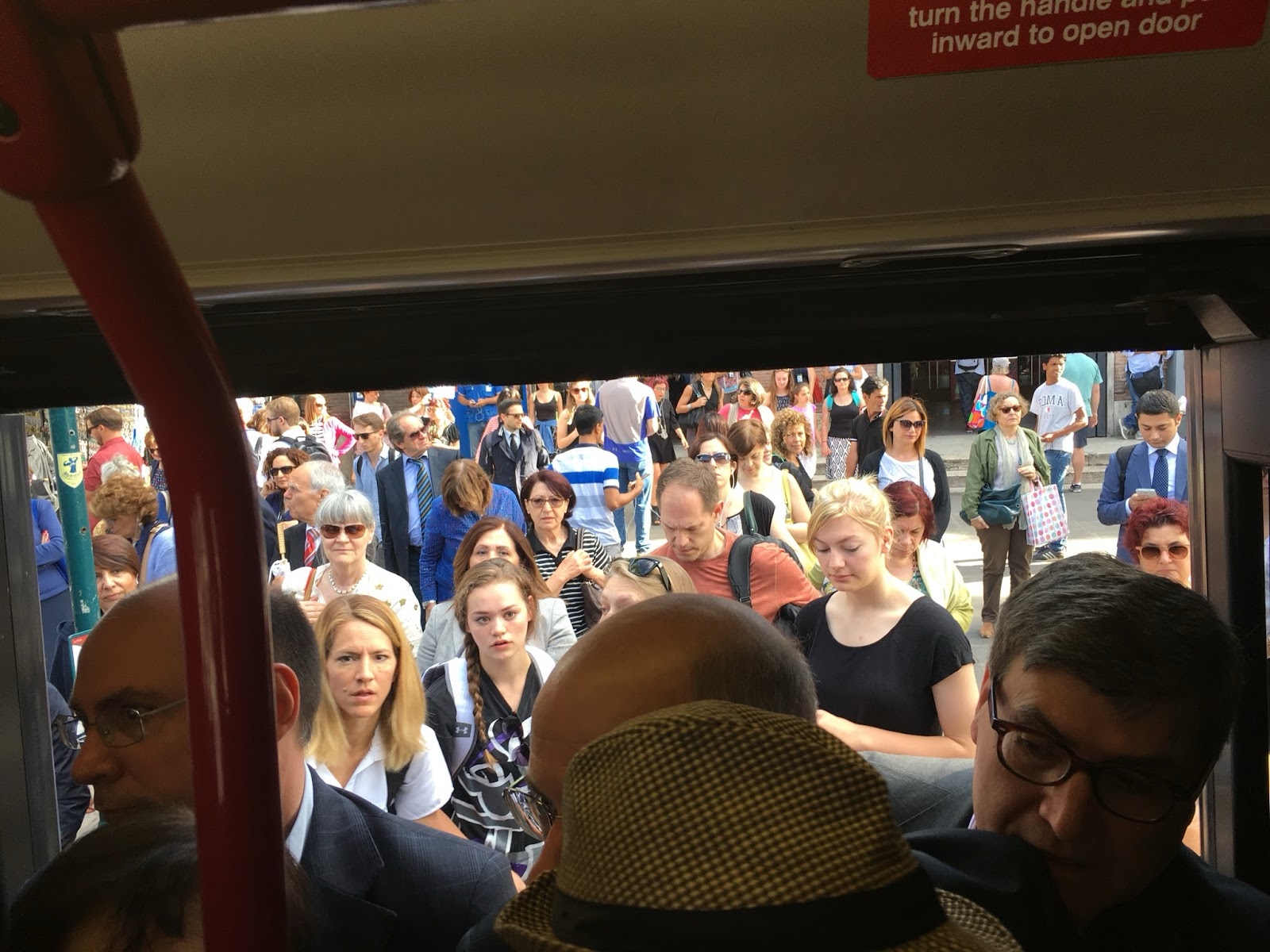 Speaking of the bus, it was a tad crowded. In fact, we had to put me and Linette on one bus to go get started with the van rental process while everyone else waited for the next one, since there just physically was not room to cram any more bodies onto this one.