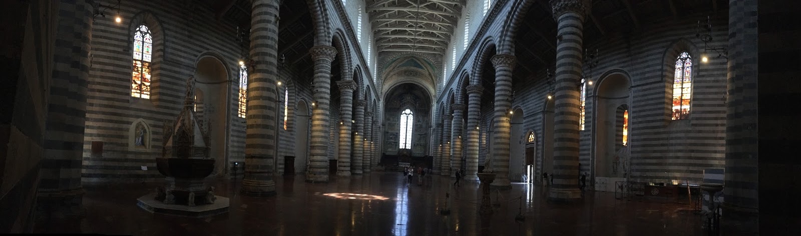 Inside, the cathedral had layers of light and dark stone (white travertine and blue-grey basalt) that made the whole thing stripey.