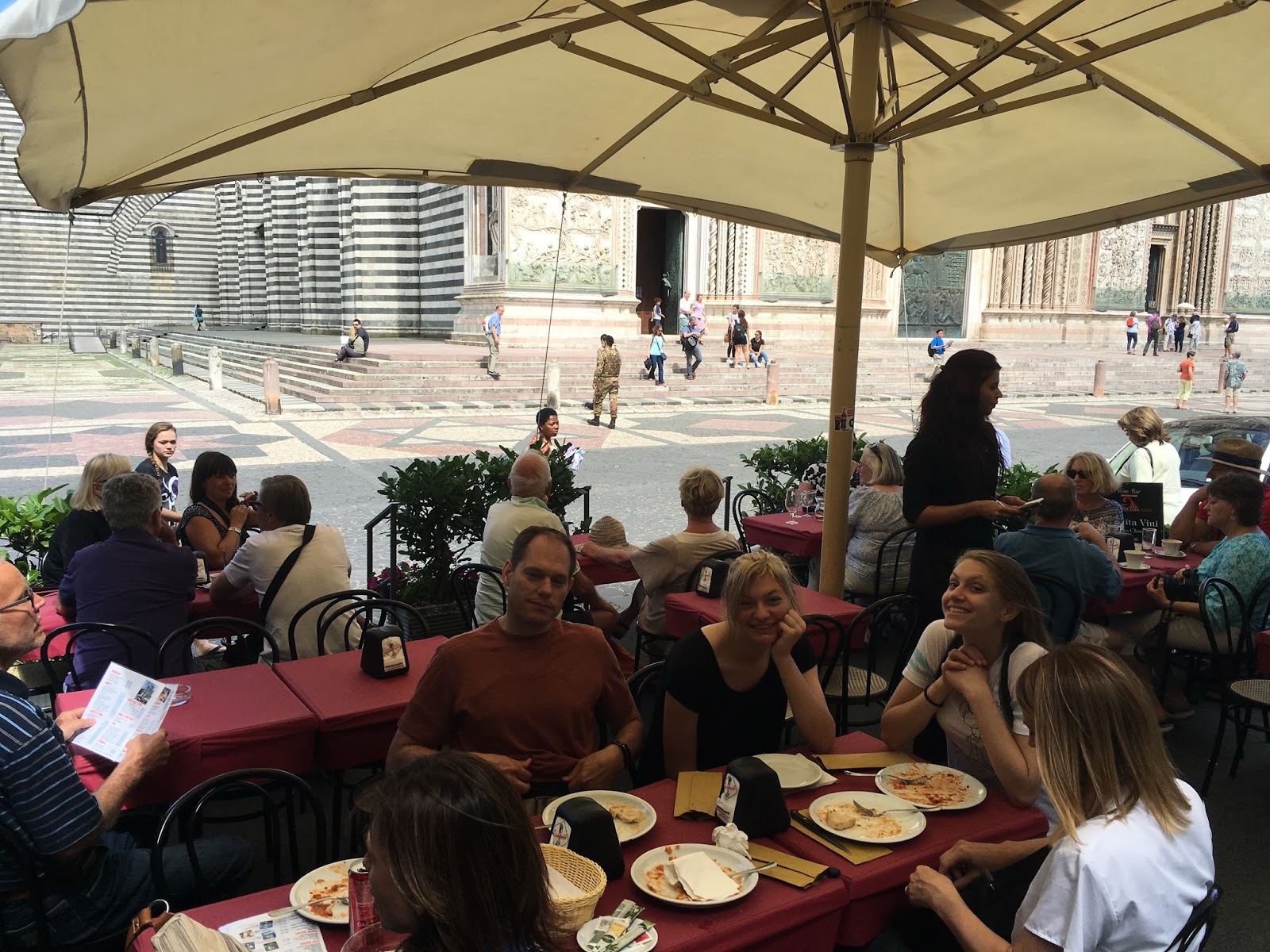 | Lunch in front of the Orvieto Cathedral |