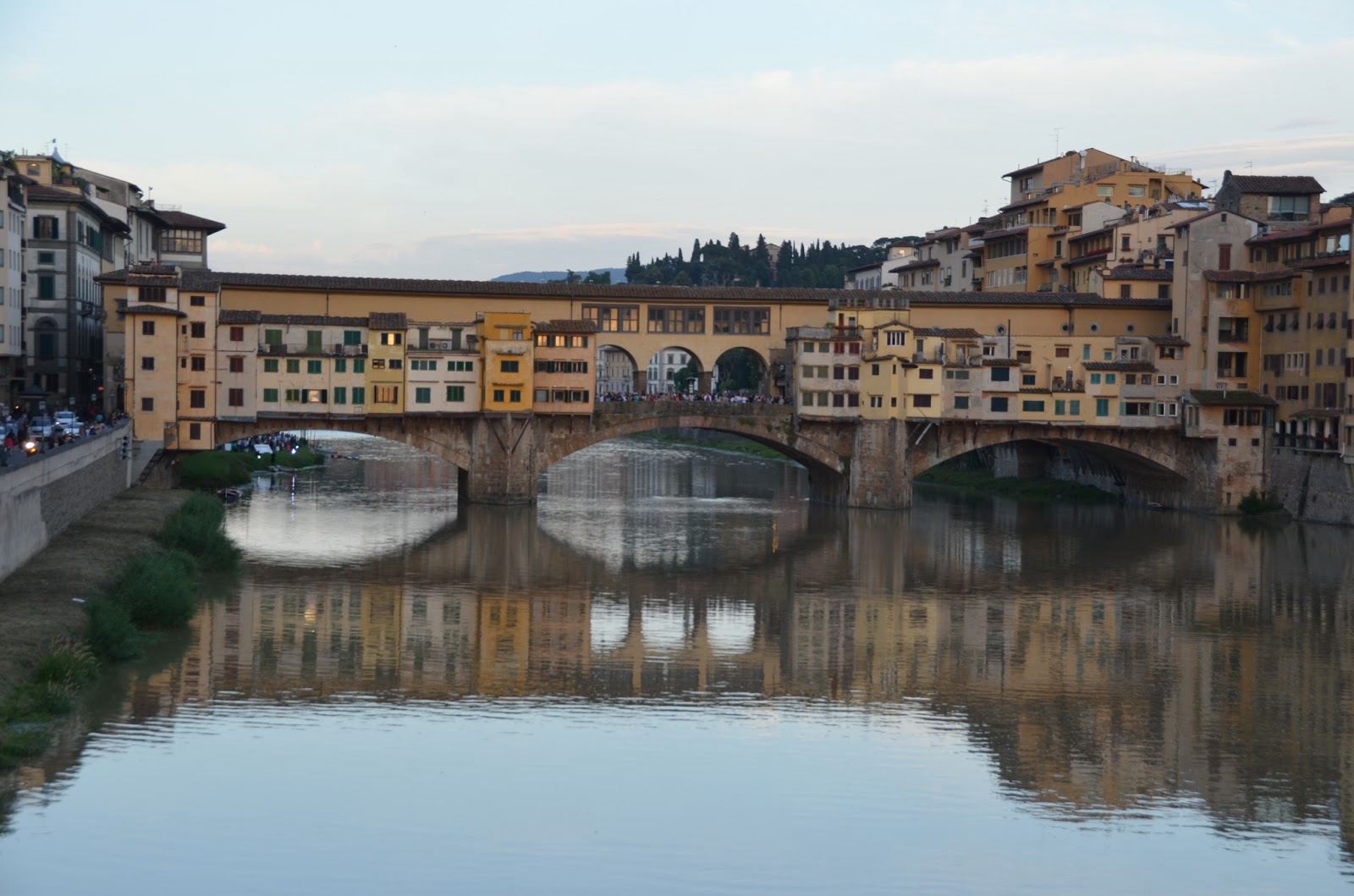 | Ponte Vecchio at dusk, from Ponte Santa Trinita. |