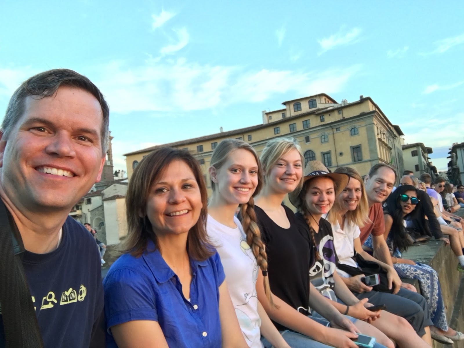 After our hectic schedule so far, it was nice to just sit and enjoy the sunset. It was sort of ironic that we came all the way to Florence, the city of amazing art and architecture, and the thing we enjoyed most the first night was a sunset that God provided for us. (Of course, the architecture provided a nice backdrop for it!)