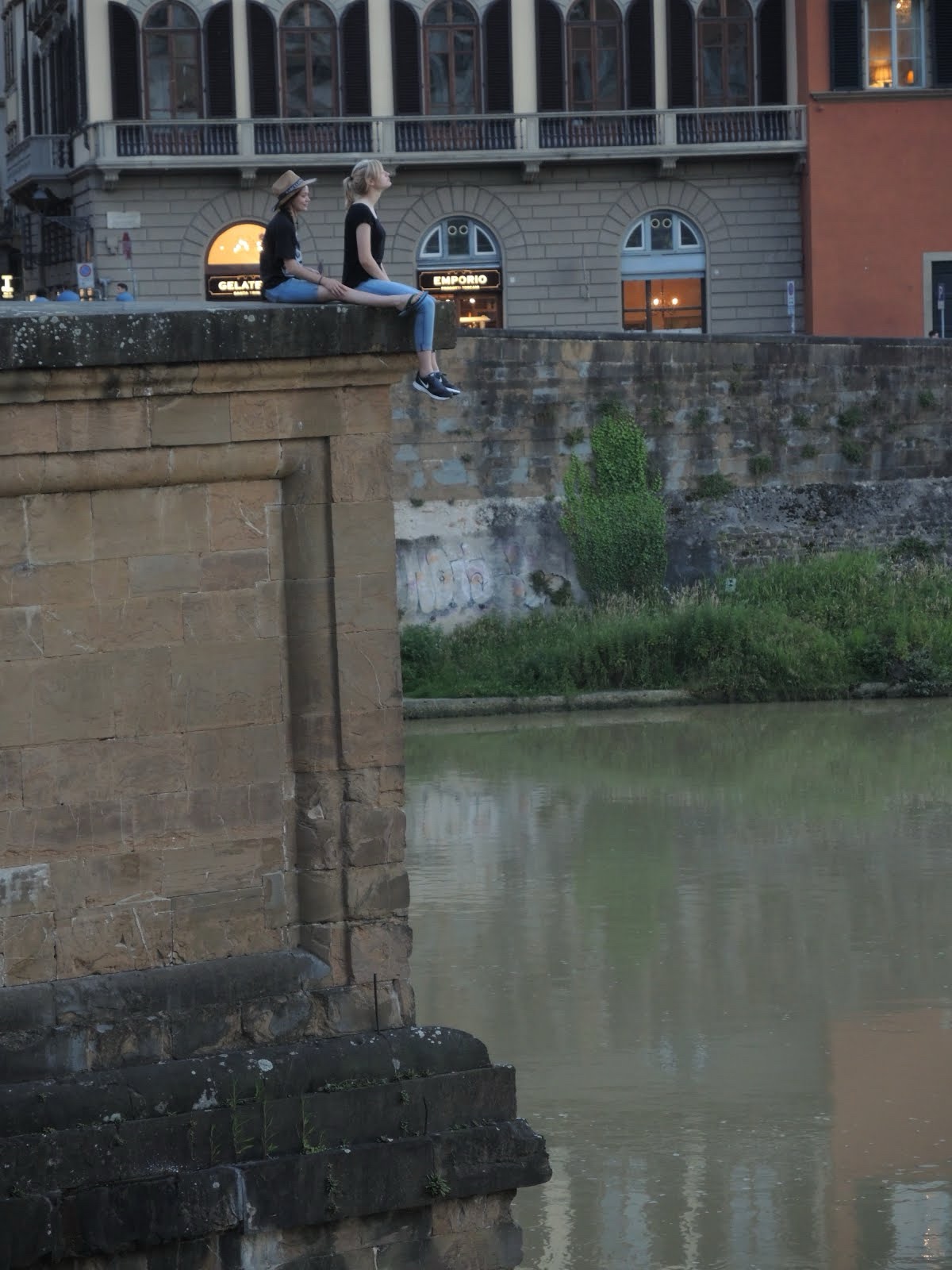 Here are the girls hanging out on a pointed ledge that juts out from the bridge.