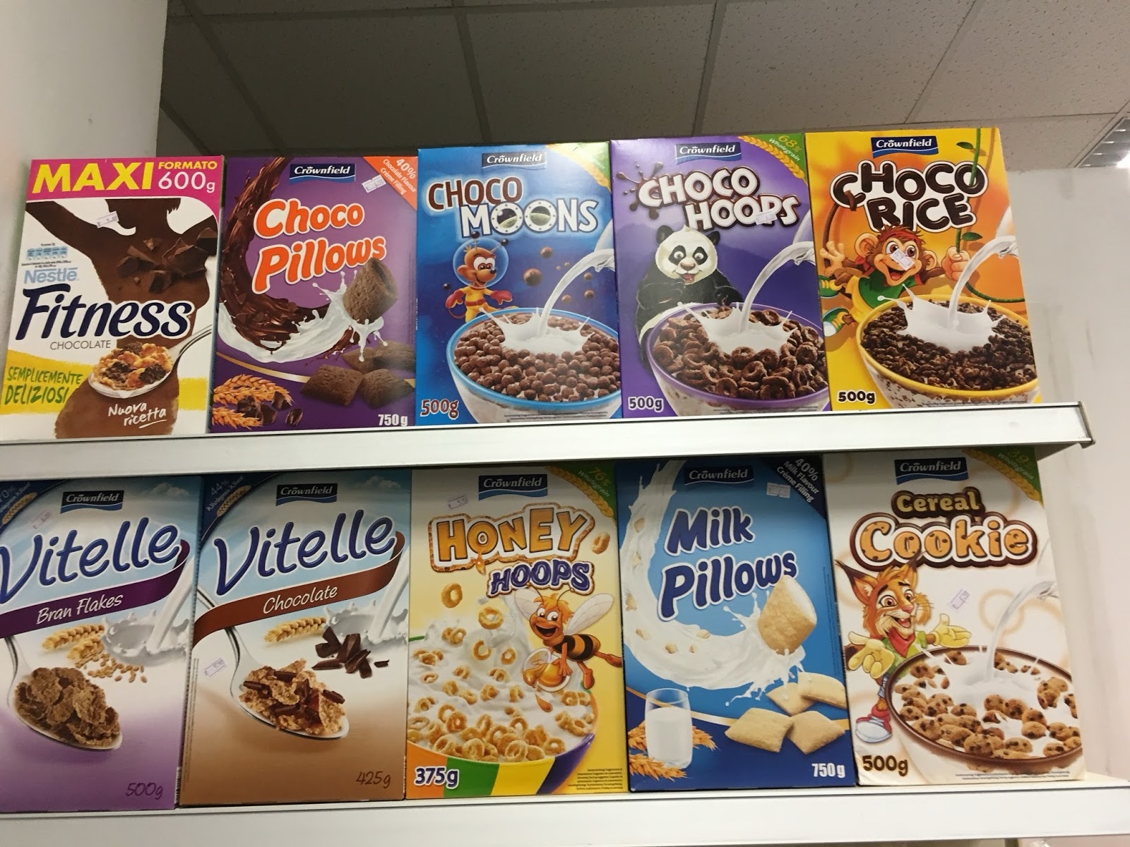 The convenience store appeared to be really into chocolate cereals.