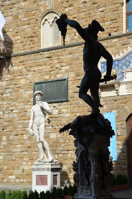 | David replica (left); Perseus with the Head of Medusa (Benvenuto Cellini). |
