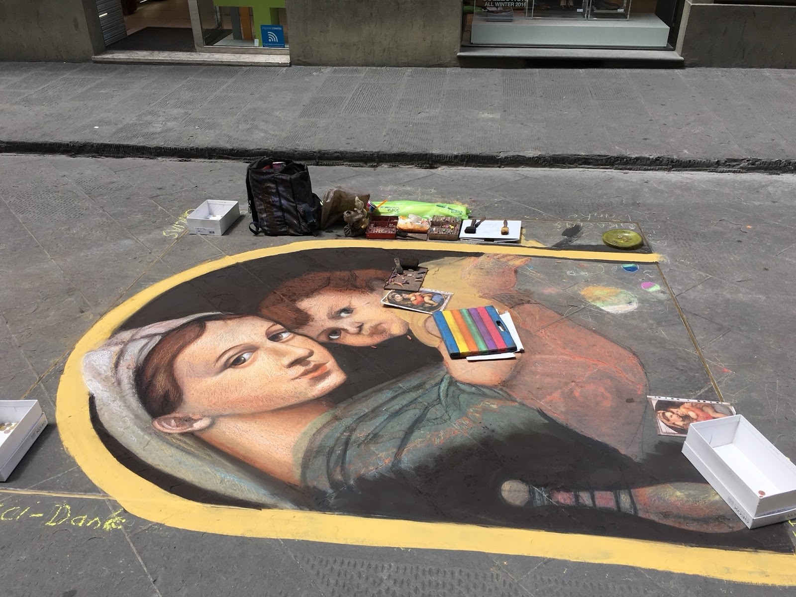 Finally we went out and explored Florence. There was cool chalk art on the street. This stuff seemed as good as the stuff we saw in the galleries.